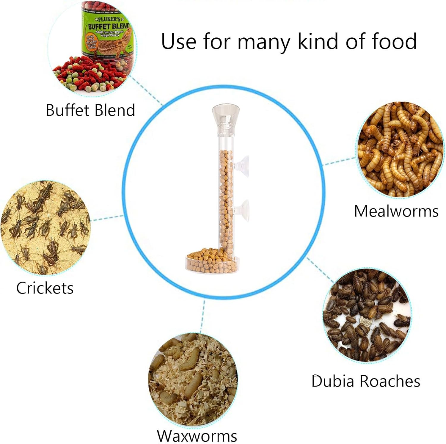 ➡Great bearded dragon accessories – This transparent acrylic bearded dragon feeder boasts a polished surface for safety and durability. – The chameleon feeder’s see-through design aids in monitoring food levels, while the feeding tray allows observation of your reptile’s eating habits. – Placing the reptile feeding bowl at a distance dispenses food gradually, promoting extended feeding times and natural hunting instincts. – The threaded top of the automatic lizard feeder allows easy, mess-free feeding without opening the tank, saving time and money. – Featuring a funnel-shaped mouth and suction cups, this feeder attaches to the aquarium’s glass wall for versatile use with various dry foods. Size Long Size: 2x4x35cm/ 0.8×1.6×13.7IN Short Size: 2x4x30cm/ 0.8×1.6×11.8IN Package Included: 2Pcs Bearded Dragon Feeder Toy 4Pcs Suction Cup ➡Note: Since the size above is measured by hand, the size of the actual item you received could be slight different from the size above. Due to the different monitor and light effect, the actual color may be a little different from the picture’s.