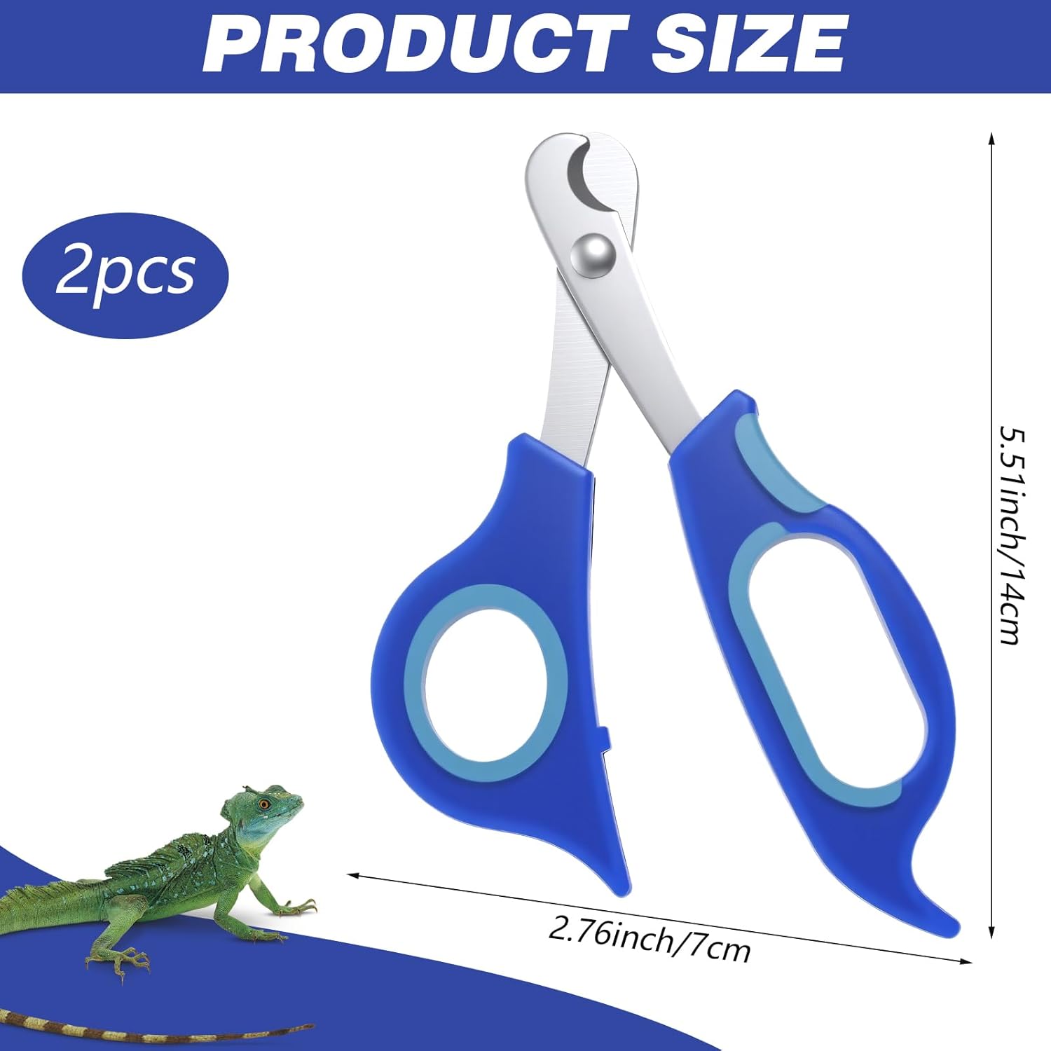 2Pcs Bearded Dragon Nail Clippers, Stainless Steel Dog Toe Claw Trimmers with Precise Angled Edges, Professional Pet Grooming Tool for Cats, Bird, Small Animals Reptile (Blue)