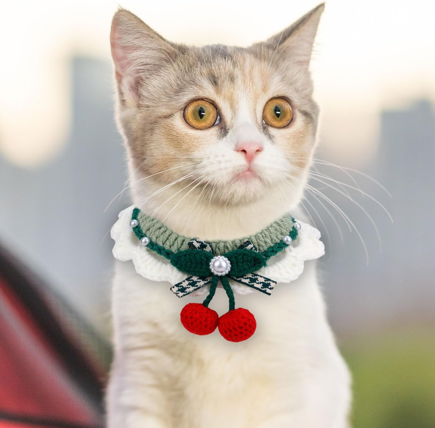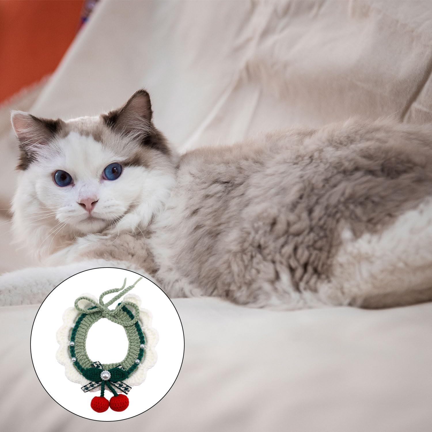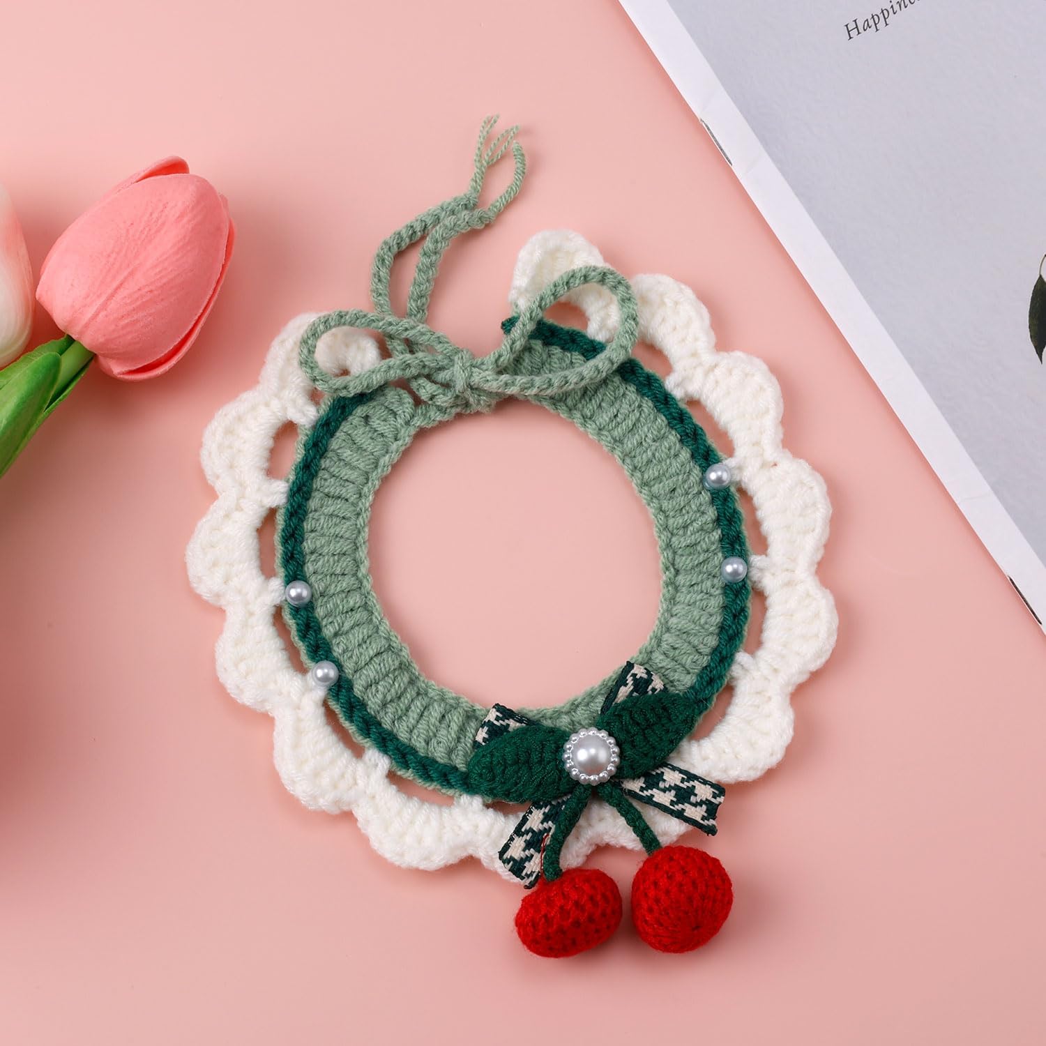 Product Content: You will receive 2 pieces of cute knitted cat collars in 2 styles, one with flowers and the other with cherries, perfect for Christmas styling for your cat, dog or other small pet.