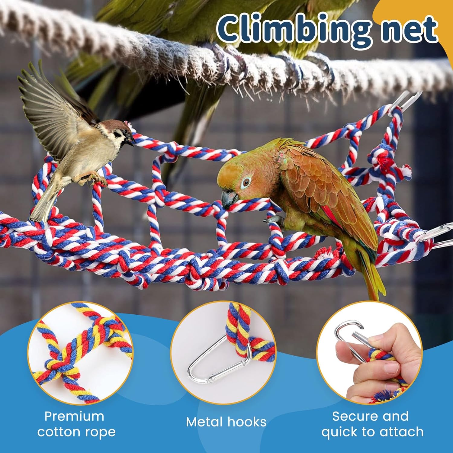 2-Pack Climbing Nets, 8 Aluminum Hooks, Chew-Resistant Ropes, Multi-Pet Use