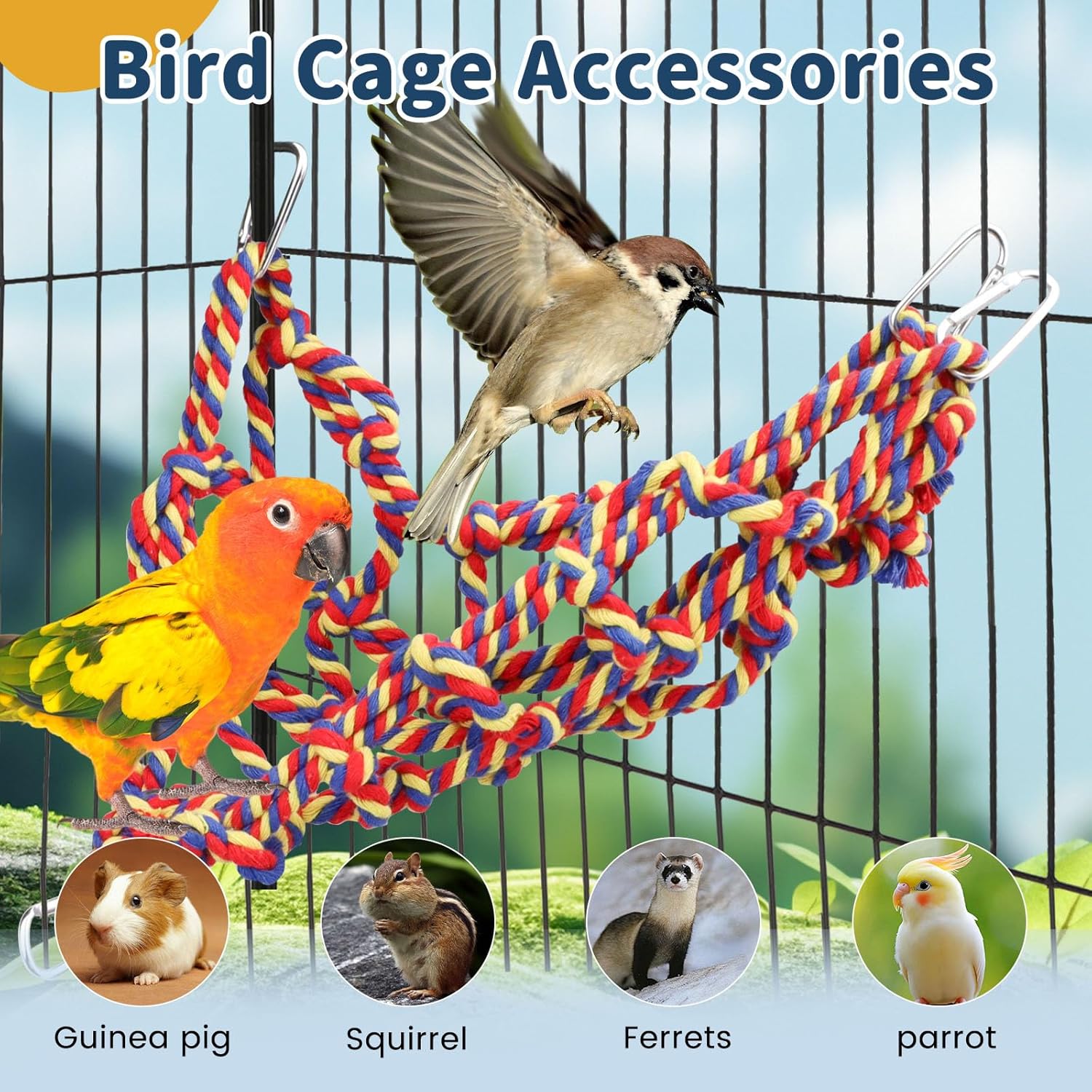 Dual-Color Design: Our pet climbing net set includes 2 premium woven nets (1 red + 1 multi-color) with 8 lightweight aluminum hooks, creating perfect hammock for rats and versatile small animal accessories for your pet’s cage.