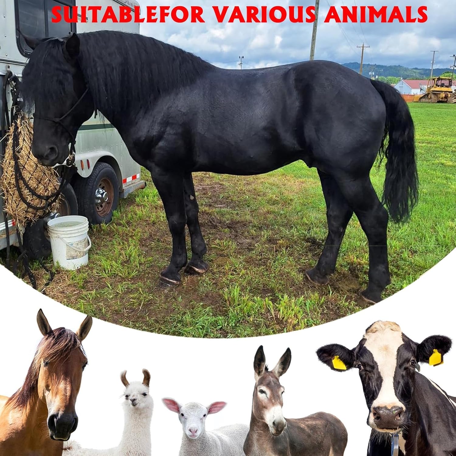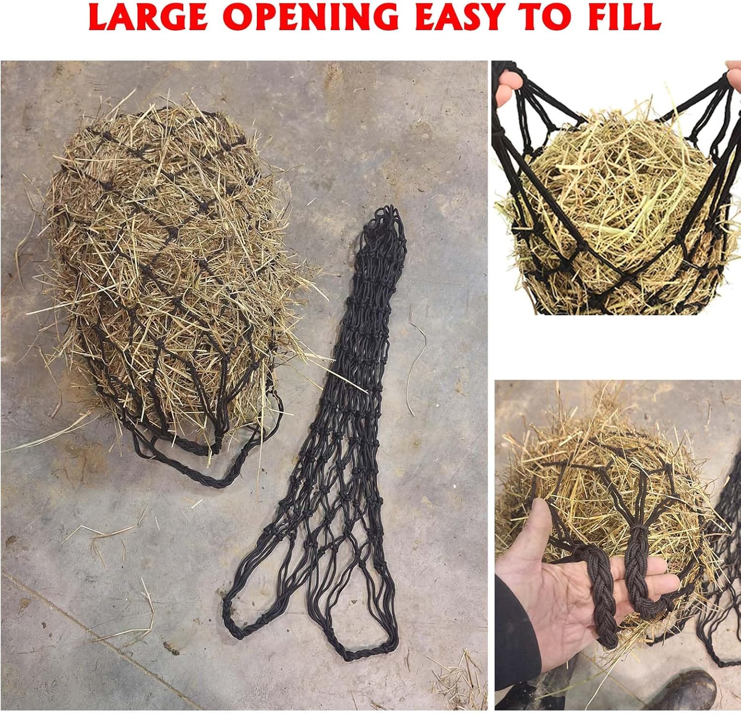 PRACTICAL FEATURES: Wide opening for easy filling, secure closure system, and balanced design helps maintain hay distribution while feeding,Perfect for stables, paddocks, or on-the-go use with horses and livestock.