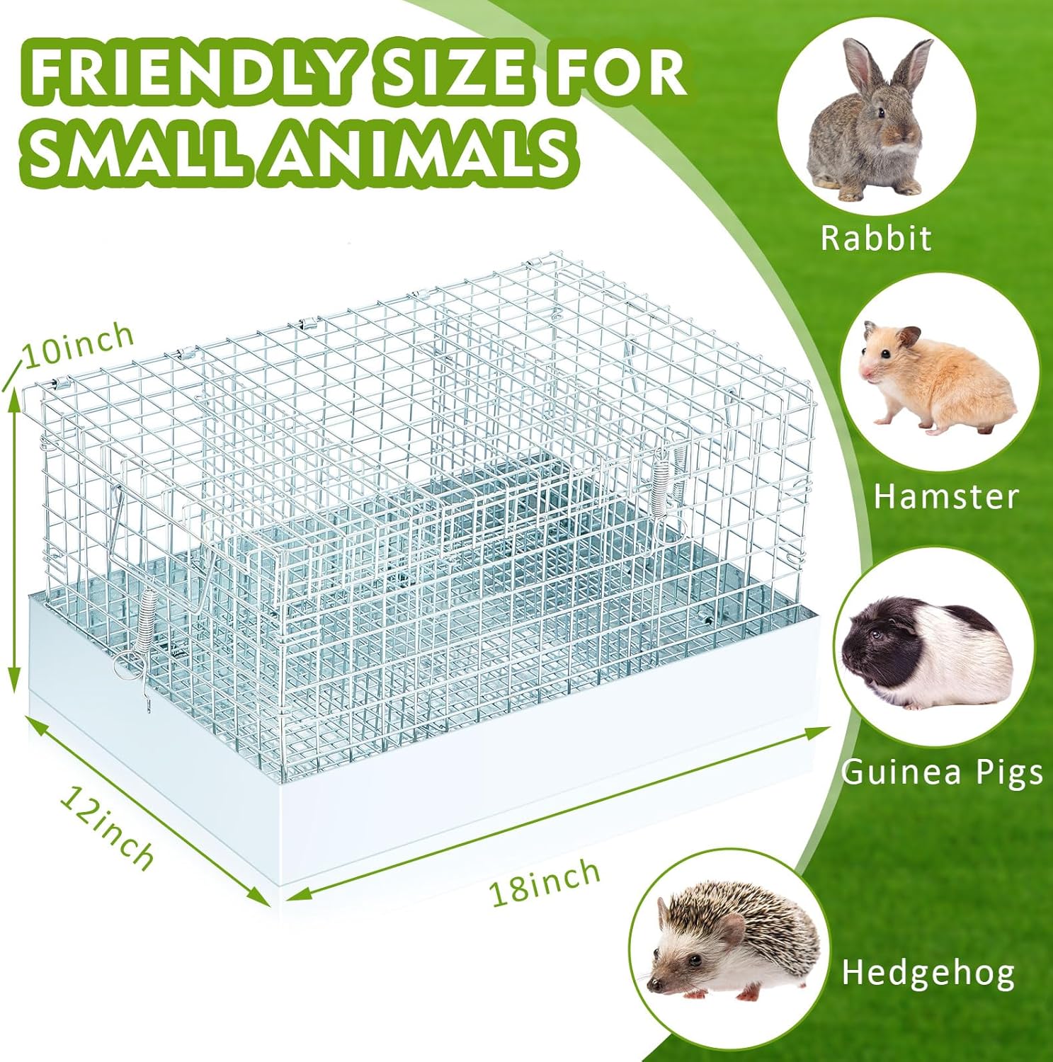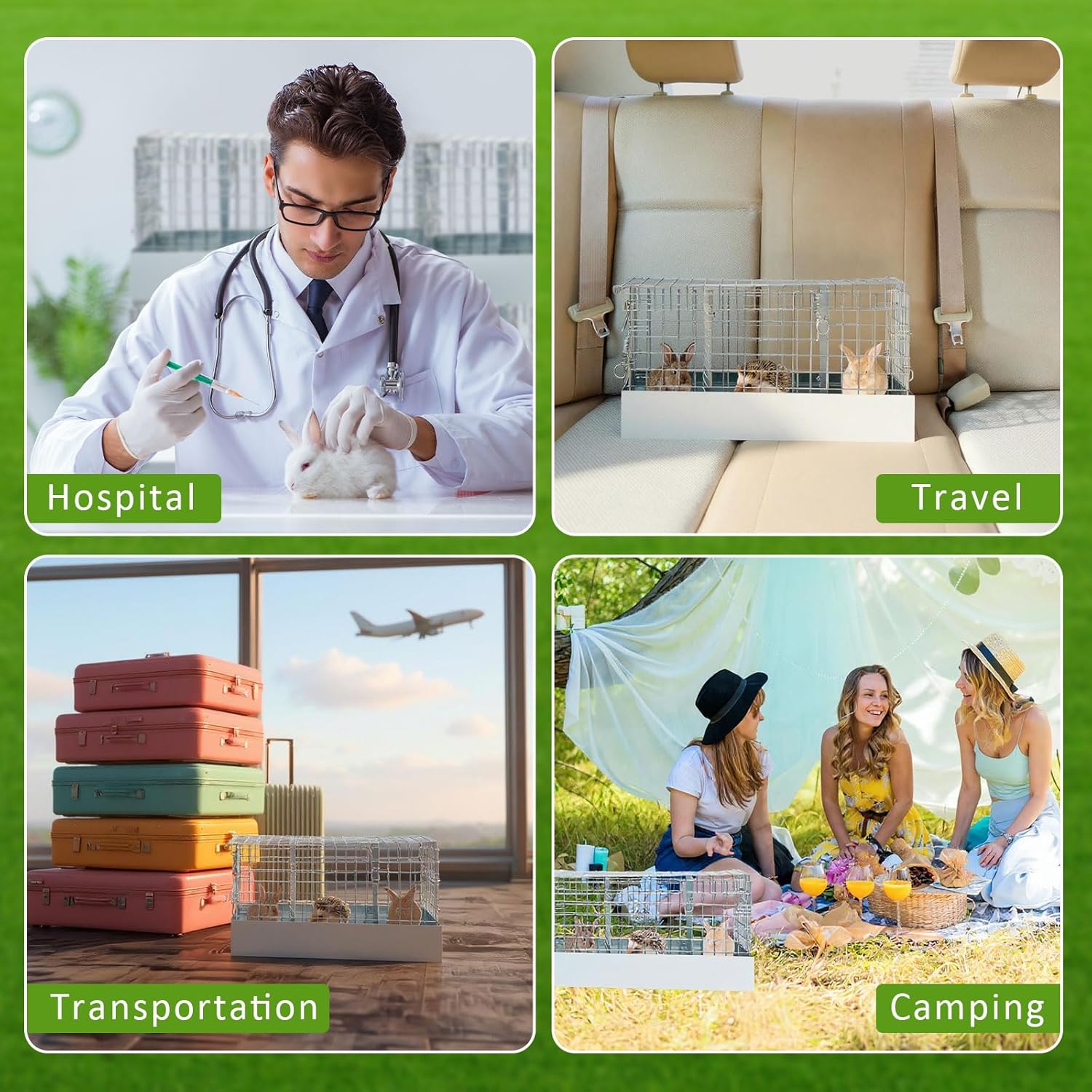 3 Hole Folding Rabbit Cage, 18 x 12 x 10 in Portable Bunny Carrier with Tray and Handles for Transport, Travel or Temporary Housing, Indoor Outdoor Pet Habitat Animal Enclosure