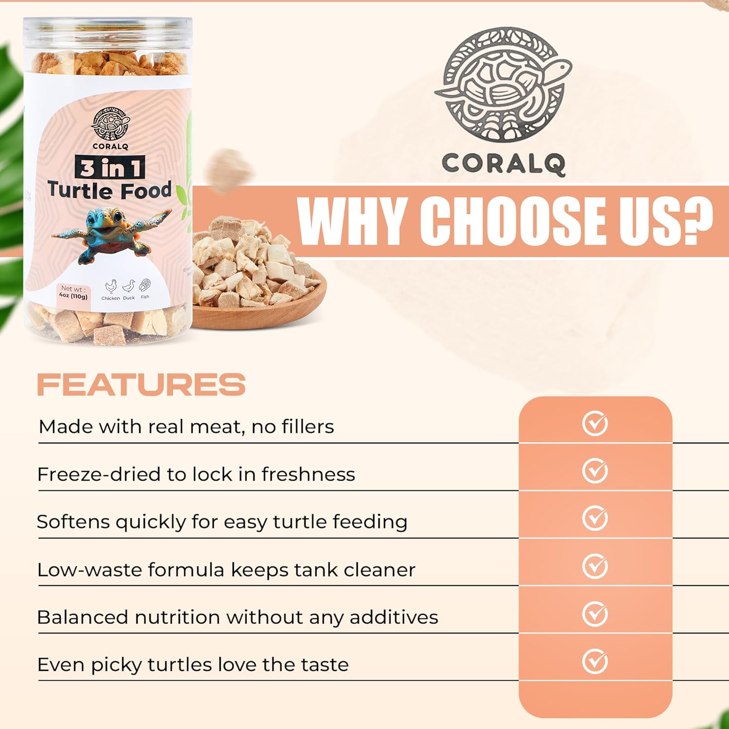 I was looking for a high-quality, natural food option for my turtle babies, and this 3-in-1 freeze-dried blend is perfect! The mix of chicken, duck, and fish gives them plenty of variety and protein. Even my pickiest turtle, who usually turns away from pellets, goes after this right awayâno more wasted food. Remember to soak them in water for 4-5 minutes.I feed it a few times a week, and it keeps my turtles active, healthy, and happy. I also love that itâs 100% natural with no fillers or artificial stuffâjust clean, protein-rich food I can trust. The quality is so clean it looks like human grade, if you want a healthy, balanced, affordable and tasty treat for your turtles, this is worth it!