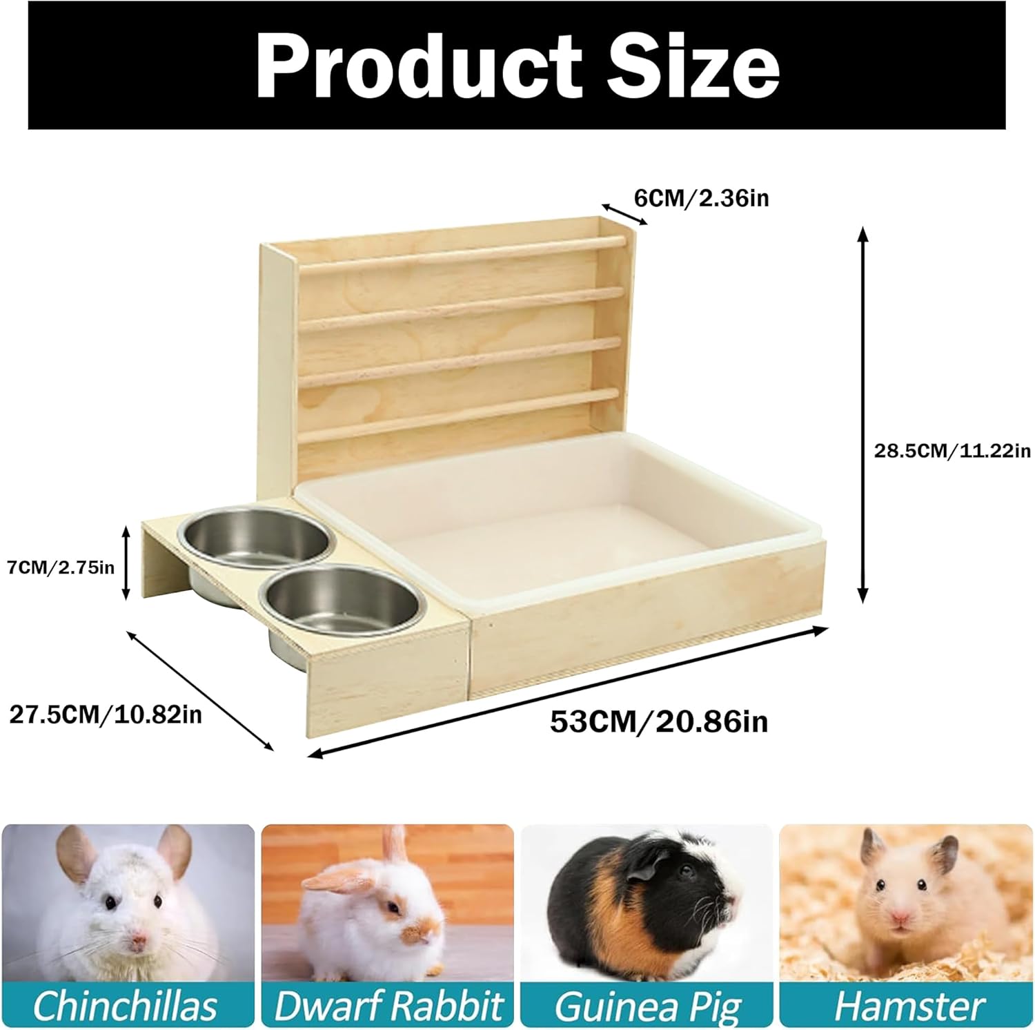 Keeps Food and Hay Clean: The unique three-dimensional design of this guinea pig litter box and hay feeder prevents hay from being trampled or soiled, while the deep iron bowls ensure food stays clean and fresh, reducing waste and promoting healthier feeding habits for your pet.