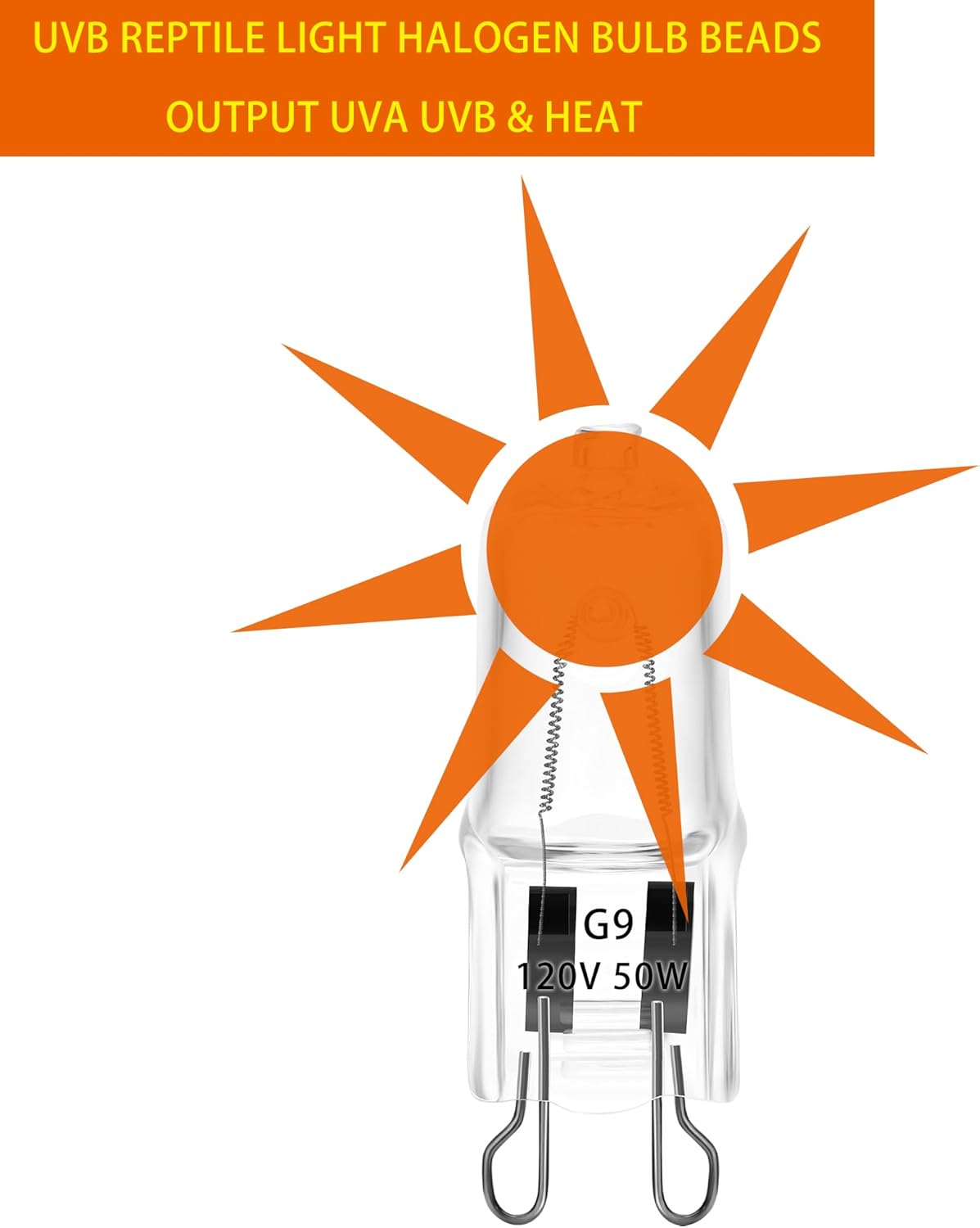 3 Pack UVA UVB Reptile Light Halogen Bulbs Beads Heat Lamp (50 Watt) Clear