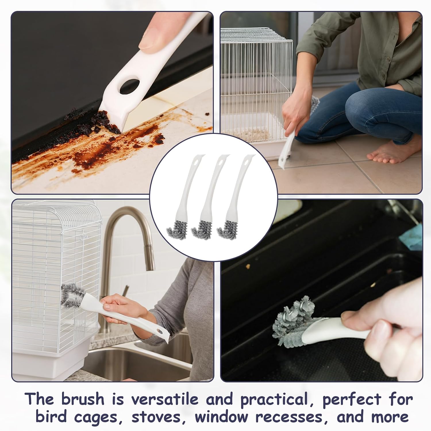 [Easy to Use] Our bird cage accessories is simple and easy to use, ensuring an efficient cleaning experience in a short time. The dual-head design allows for different cleaning tasks, helping you clean hard-to-reach crevices and the bottom of the cage, effectively helping you maintain a clean and hygienic birdcage environment.