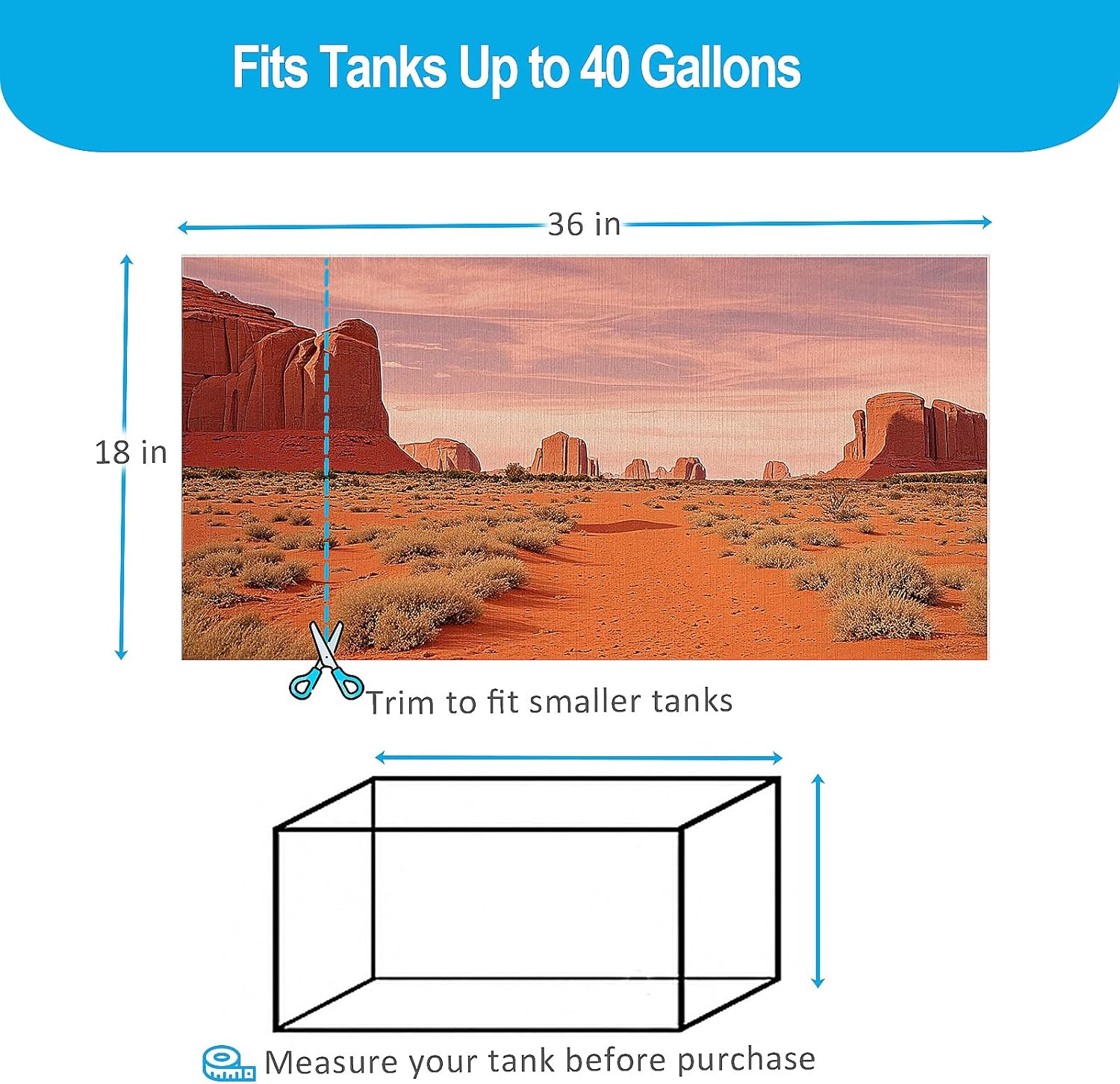 Perfect background for any size tank. It can be cut at any size. Attach with tape or glue dots to outside layers. Comes folded, quality of a curtain.
