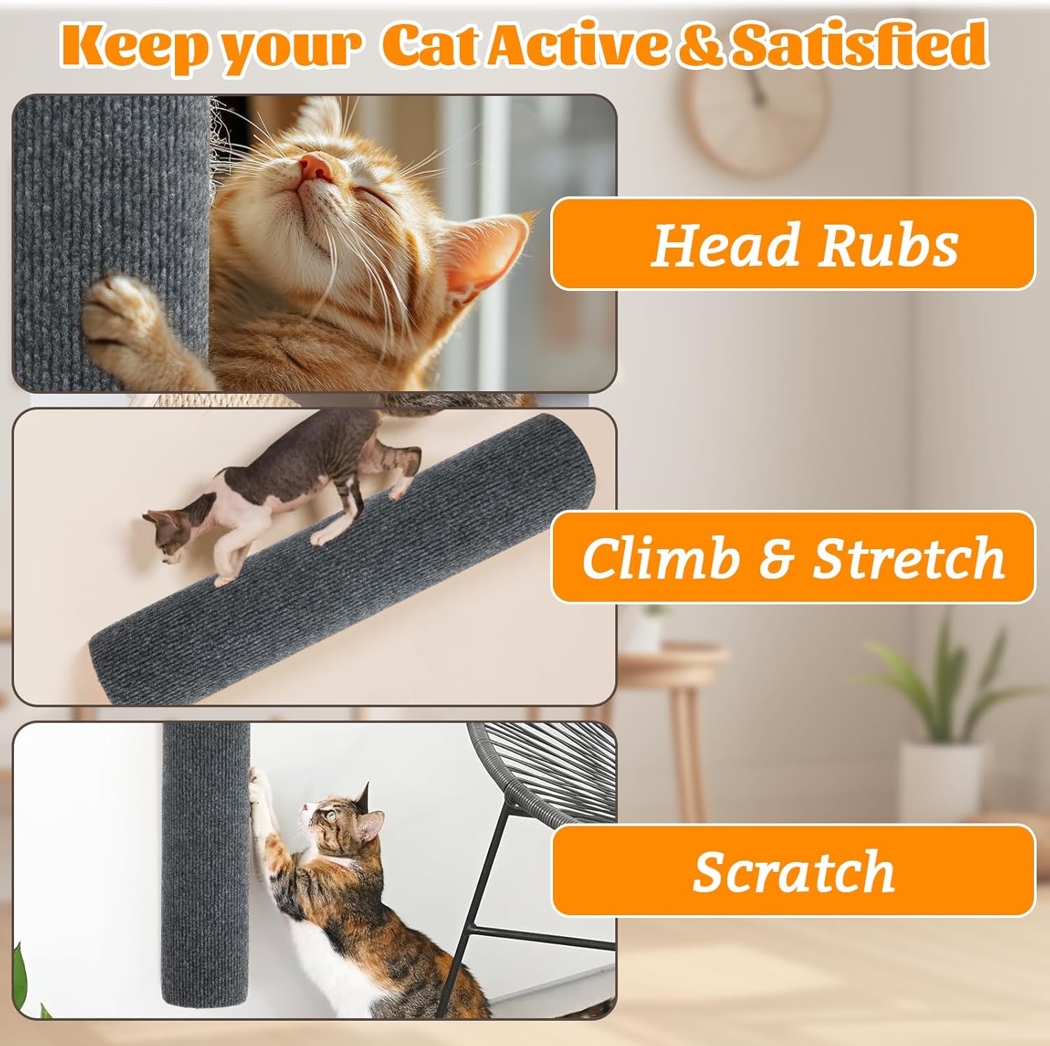 PREMIUM MATERIAL: This cat wall scratcher is made of high-quality PE rods and polyester materials. It is gentle on a cat’s paws, helping to remove dead skin while providing a satisfying scratch and keeping the paws healthy