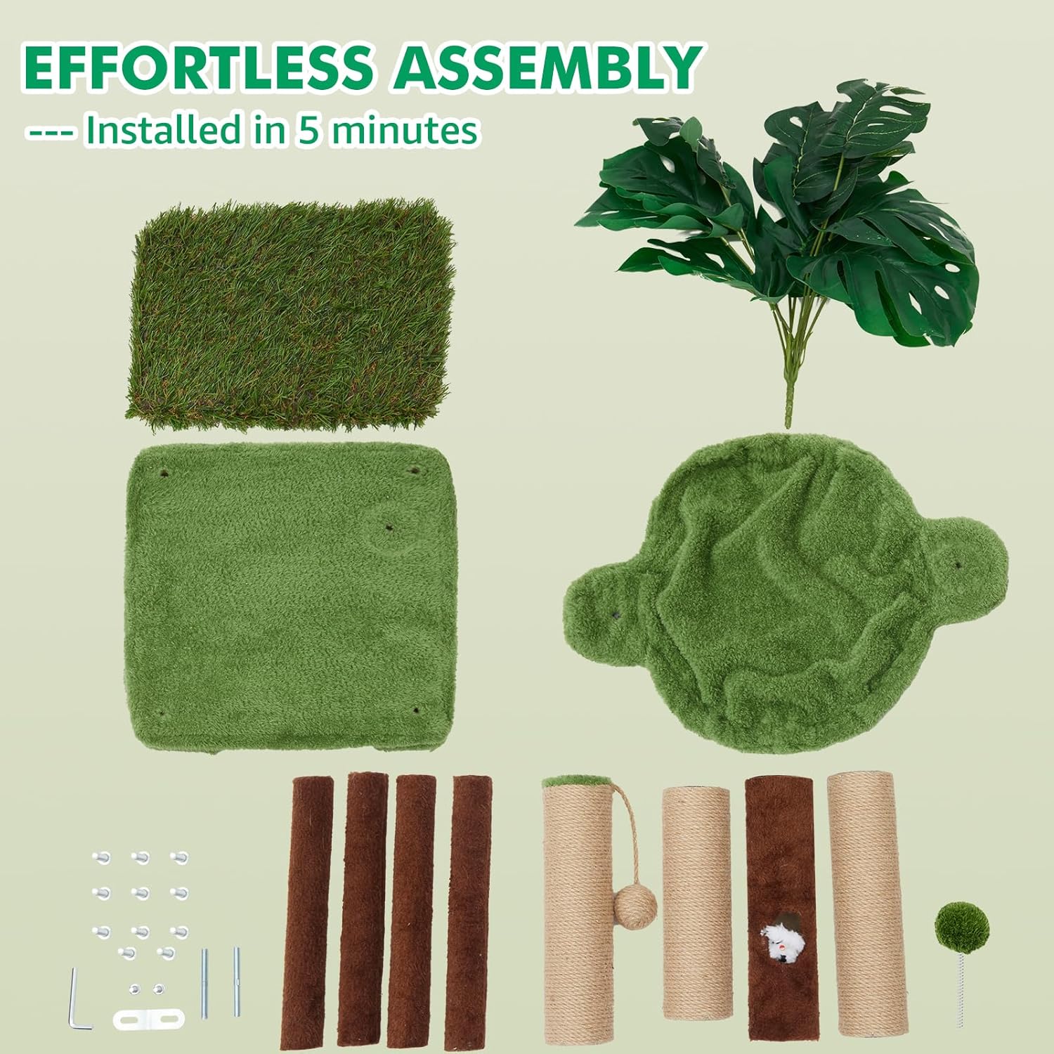 【Home Decoration with Green Plant Elements】The vivid green leaves and the color of the cat bed create an immersive jungle atmosphere that seamlessly blends with home decoration, while also stimulating the cat’s natural curiosity. It integrates functions such as sleeping, playing, lounging, frolicking, and scratching, taking into account both aesthetics and practicality. Bring nature indoors with our eco-chic cat tree.