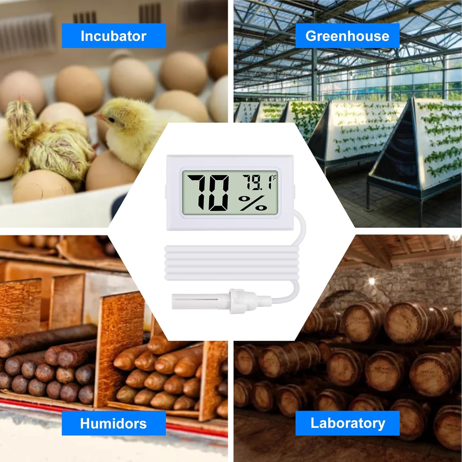 Mini hygrometer thermometer meter with probe compatible with for incubators, greenhouse, reptile tank, guitar case, restaurant and office