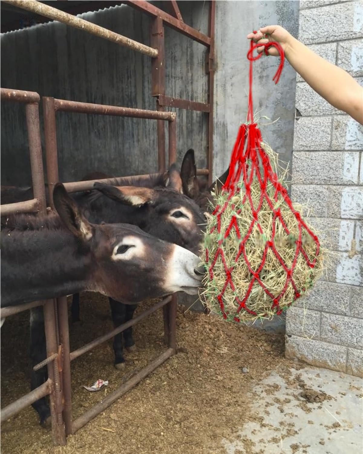 Dimensions: The length of the bag is 40“,each hay net is 4″*4″ , providing ample space for a generous portion of hay.