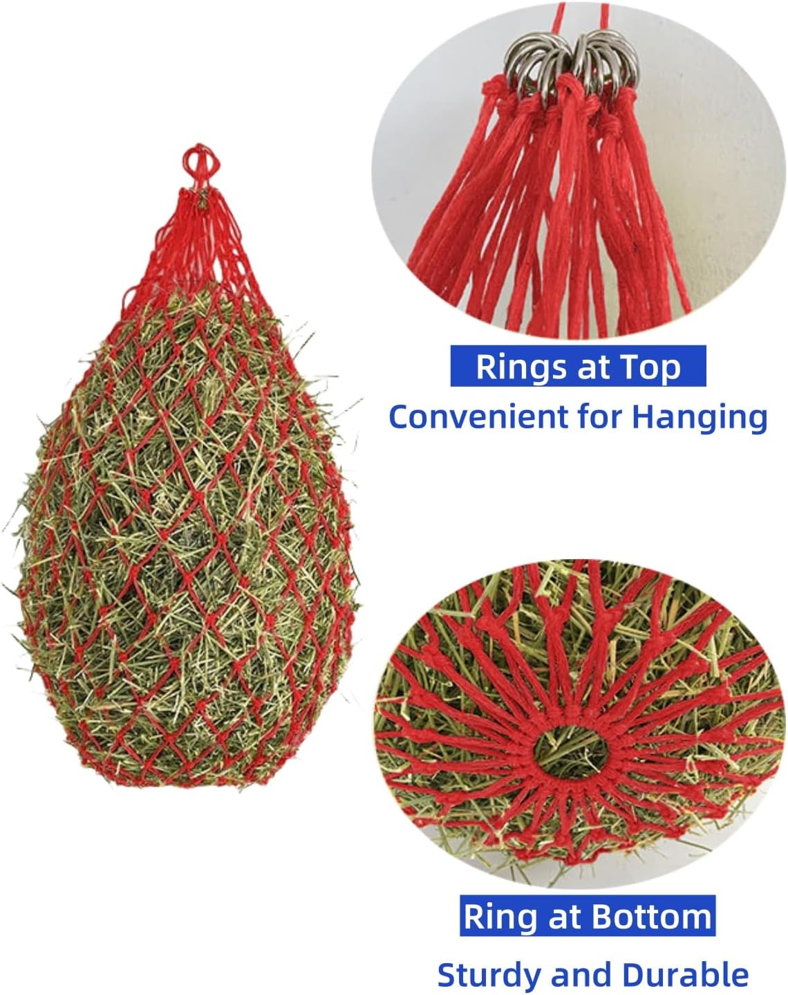 Durable Construction: Made from sturdy nylon netting material, these hay bags can withstand daily use and resist tearing or fraying.