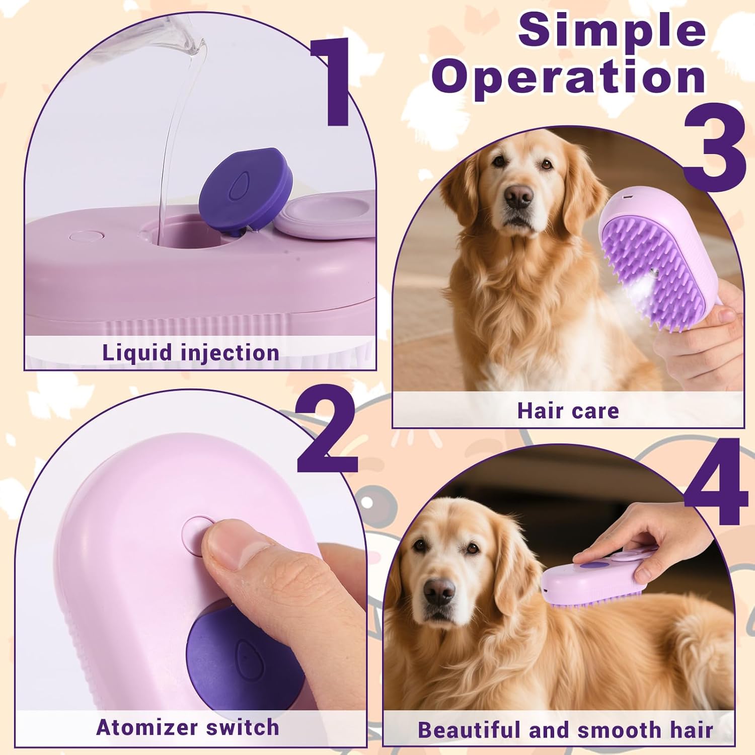 3 reviews for 4-in-1 Pet Steam Brush for Dogs & Cats – Anti-Static Deshedding Grooming Tool with Massage & Cleaning for Long/Short Hair | Micro-B Rechargeable (Purple)