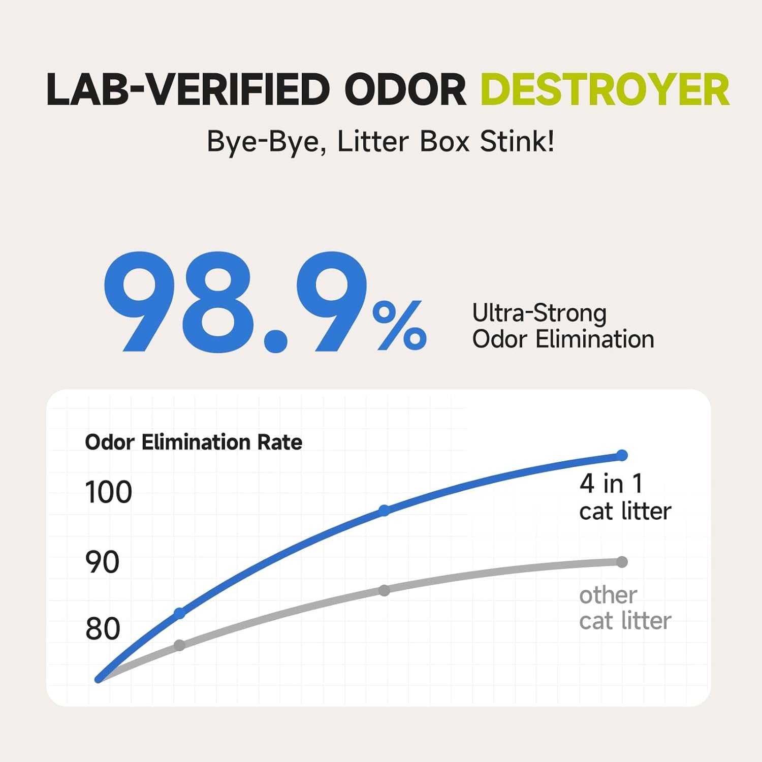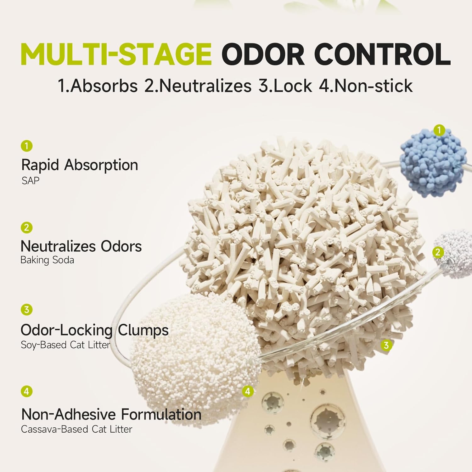 4-in-1 Premium Multi-Ingredient – A perfect combination of tofu litter, cassava litter, SAP (super absorbent polymer), and baking soda, offering natural and efficient performance.