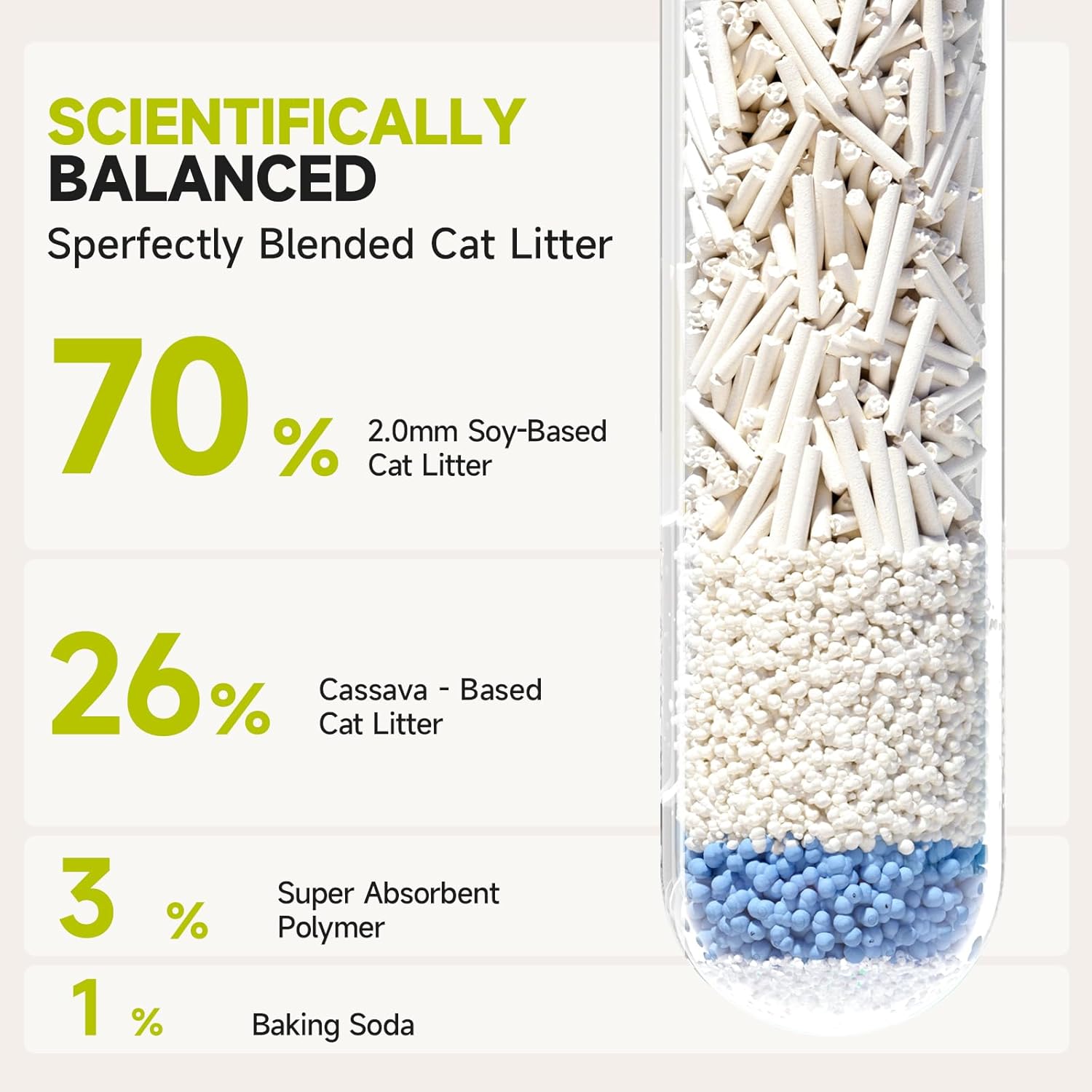 4-in-1 Tofu Cat Litter, Mixed Cassava, Baking Soda, SAP, Natural Plant, Fast Clumping, Strong Water Adsorption & Deodorization, No Tracking, Dust-Free, Flushable, (5.5lbs x 2bags)
