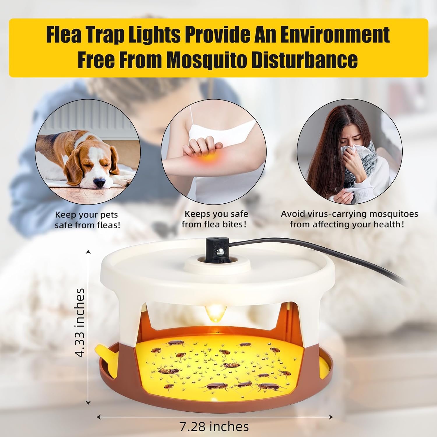 This flea trap works surprisingly well for catching fleas and other small bugs indoors. Itâs easy to set up just plug it in, add a sticky disc, and turn on the light. Within a day or two, I noticed a big reduction in fleas around my carpets and pet areas. The light and heat attract insects effectively, and the sticky pads trap them securely. I like that itâs nontoxic and safe to use around pets and kids, which gives me peace of mind. The set comes with plenty of replacement discs, bulbs, and wires, so it lasts a long time. Itâs quiet and doesnât have any smell, which is great for using in bedrooms or living rooms. Overall, this is a simple, affordable, and effective way to control fleas indoors without using harsh chemicals.