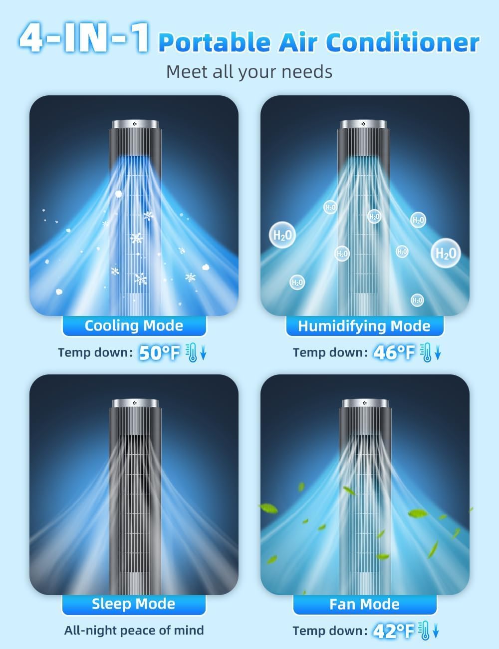 4 reviews for 42 INCH Windowless Portable Air Conditioners w/4 Modes & 3 Speeds, 1-Gal Tank for 15H Cooling, 12H Timer, Swamp Cooler Air Conditioner No Window Needed, 90° Oscillating AC Unit for Bedroom