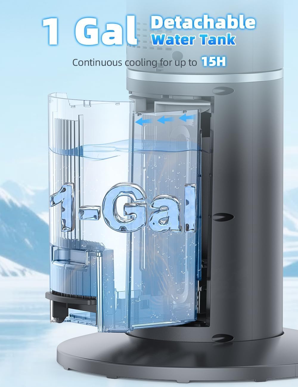 【𝟏𝟓𝐇 𝐂𝐨𝐧𝐭𝐢𝐧𝐮𝐨𝐮𝐬 𝐂𝐨𝐨𝐥𝐢𝐧𝐠 𝐰𝐢𝐭𝐡 𝟏-𝐆𝐚𝐥 𝐖𝐚𝐭𝐞𝐫 𝐓𝐚𝐧𝐤】Enjoy efficient cooling with our portable swamp cooler indoor. Equipped with a large 1-gallon water tank and 4 upgraded ice packs, it offers up to 15 hours of continuous cooling without frequent refills; reduces indoor dryness by 35%, ensuring a comfortable environment. Plus, with the visible water level, you can monitor the water tank easily and refill it when needed. (Data collected during low-speed tests.)