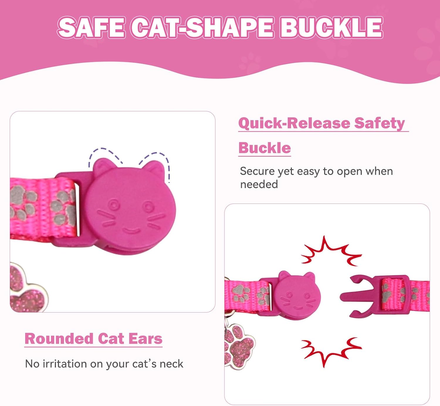Reflective Paw Pattern for Safety:These breakaway cat collars feature paw-shaped reflective designs to keep your cat visible at night, stylish by day and protective in the dark.