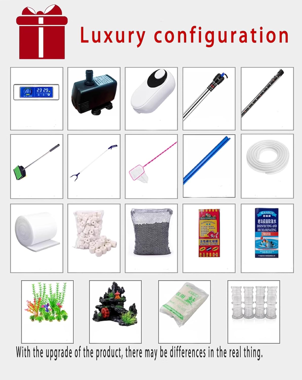 50 Gallon Long-Term No-Water-Change Fish Tank 19.7W x 15.7L x 45.3H Ecological Aquarium LED Light Large Vertical Fish Tank
