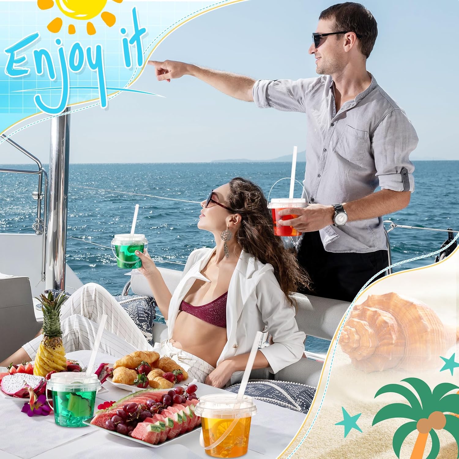 8 reviews for 50 Set Clear Plastic Cups 16 oz Ice Cream Buckets with Lids and Straws Disposable Drink Cups Cocktail Pails with Handles for Outdoor Holiday Travel Beach Birthday Pool Party Supplies