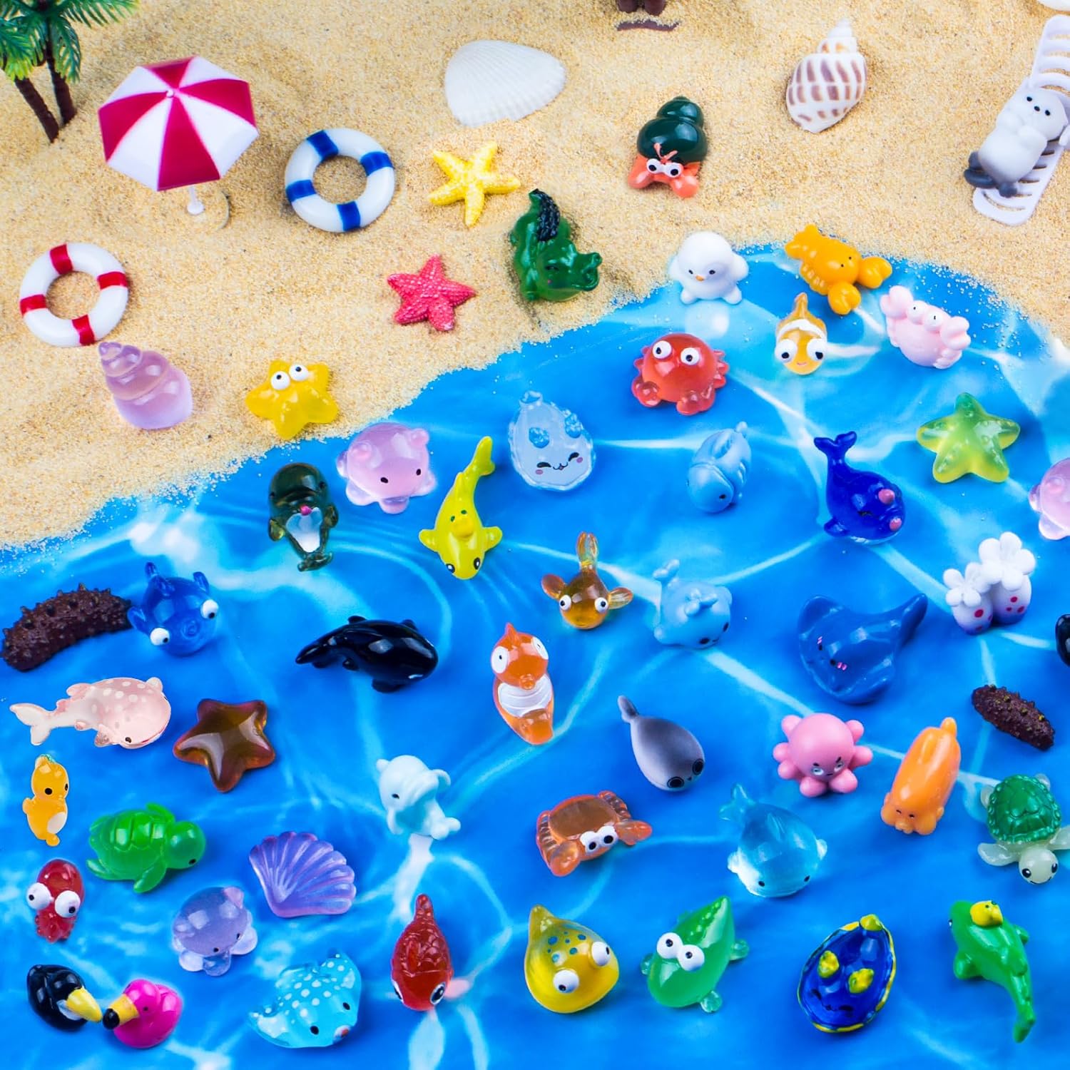 50pcs Mini Ocean Resin Animals, Miniature Figurines for Desk Pets, Resin Charms, Animal Figurines, Cute Mini Animals for Decoration and Hiding