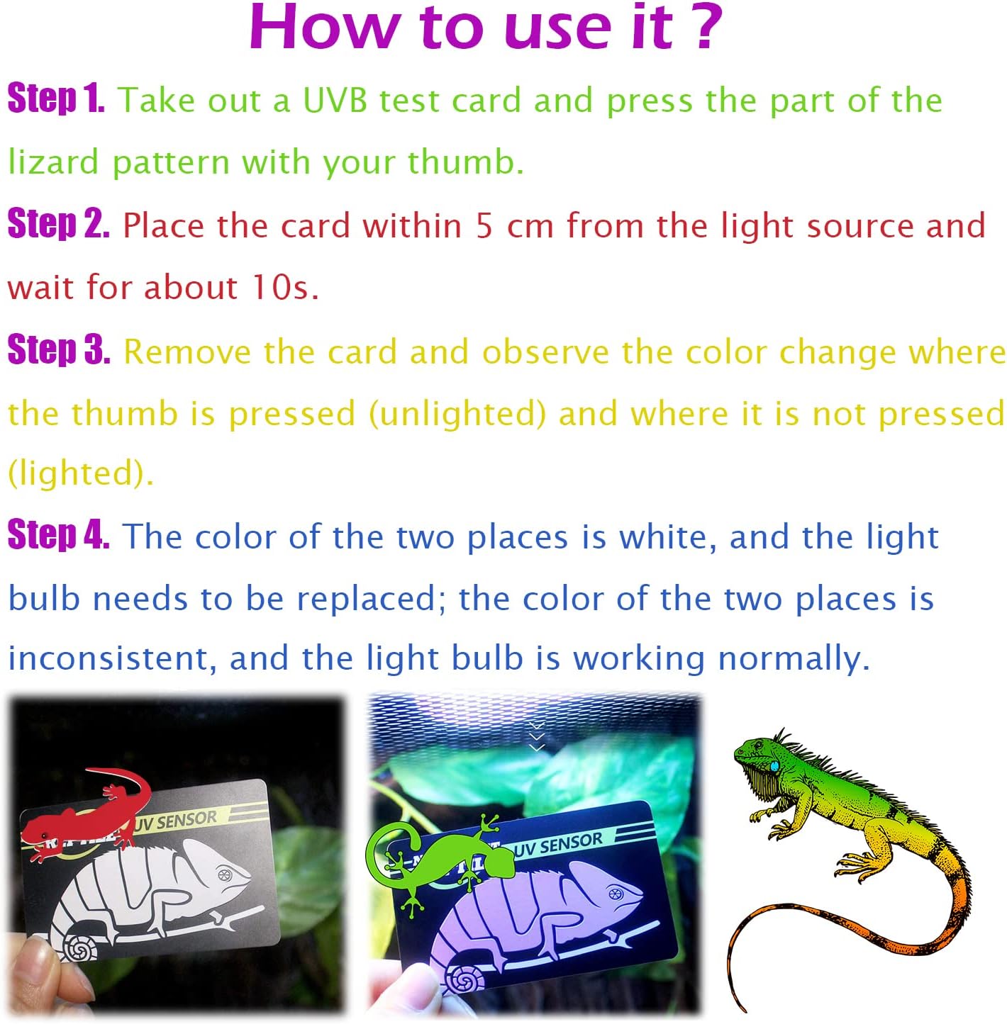 NOTE: Fit for 3.0 ~10.0 UVB bulb and Fluorescent bulb, and please put the card in the ticket or store it in a dark place when not use.