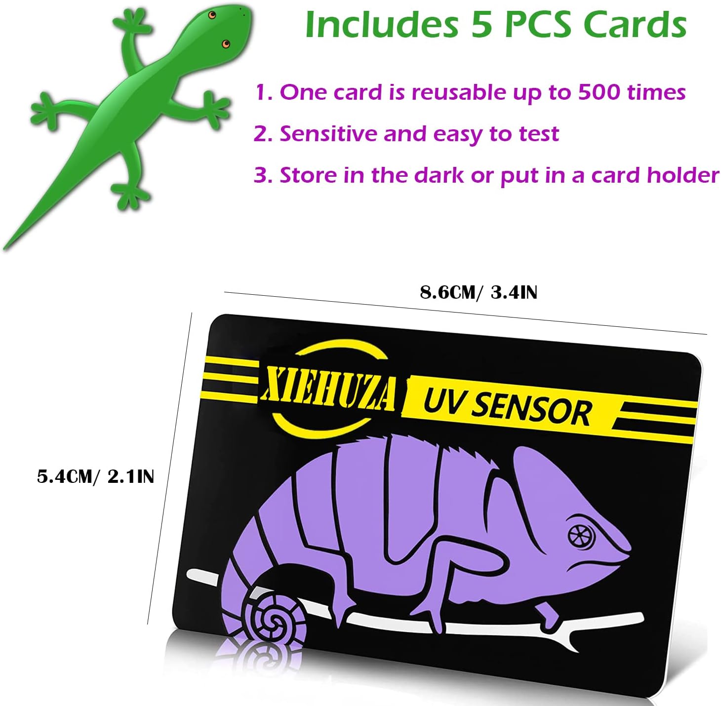 5Pack Quick UVB Test Sensor Cards, Reusable Reptile UVB Tester Heating Bulb Photochromic UVB Card Indicator Over 500 Times, UVB Light Meter for Sunglass Test Sterilizing