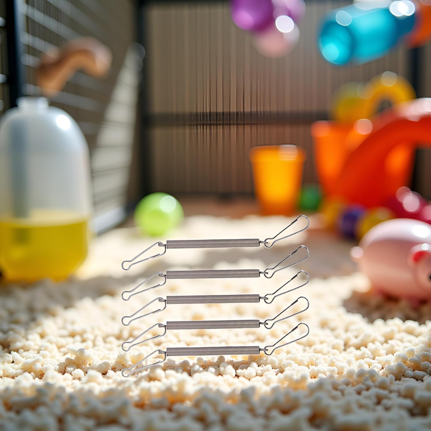 Versatile Set: This set includes 5 springs and 2 clips for securing water bottles or dispensers for small pets like rabbits, guinea pigs, and hamsters.