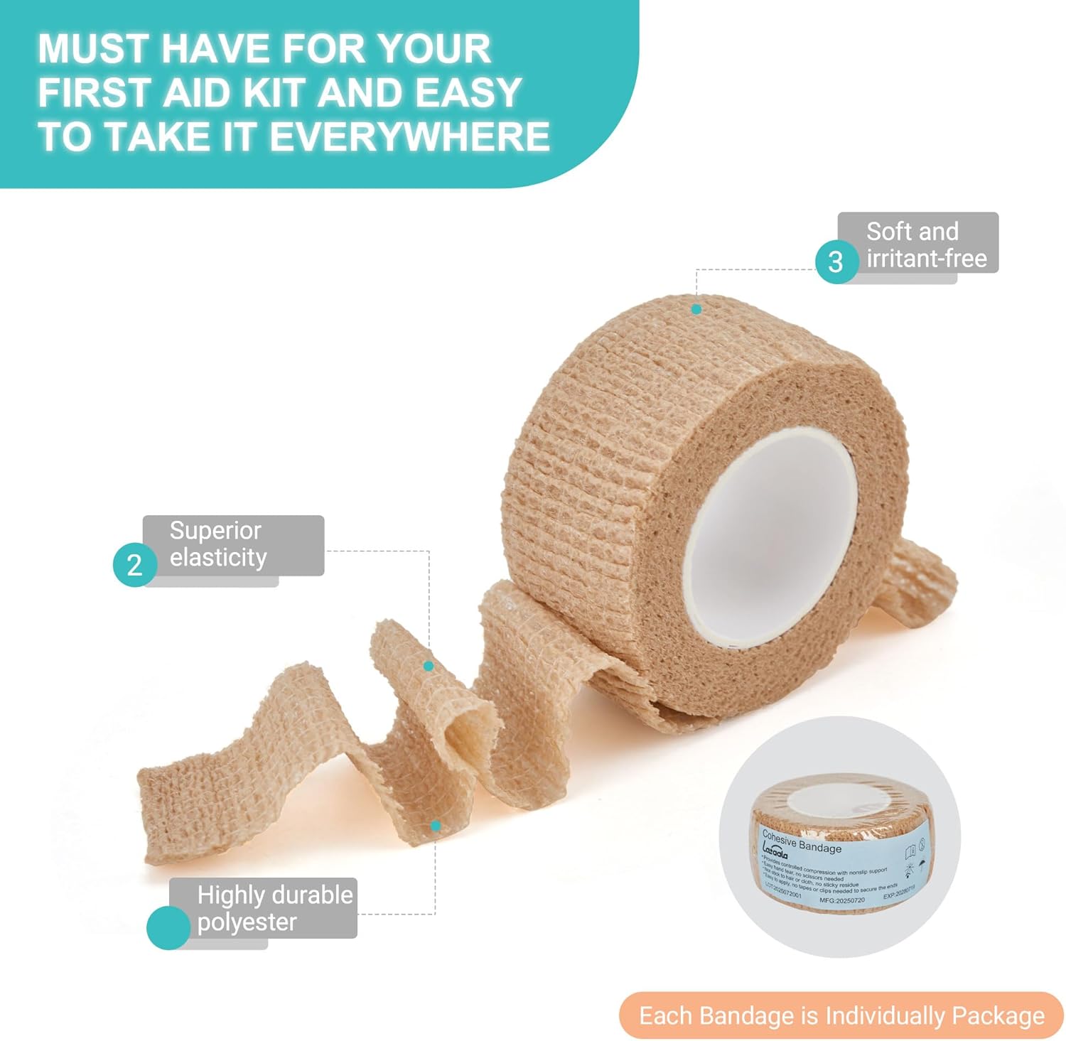 [Easy Hand-Tear Convenience]: Effortlessly tear our self adhesive bandage wraps by hand to any custom length you need—no scissors required! This user-friendly design saves time and hassle, making it perfect for quick first-aid applications during sports, workouts, or emergencies. Ideal for all skill levels, from beginners to professionals, ensuring a seamless experience when securing injuries or supports.