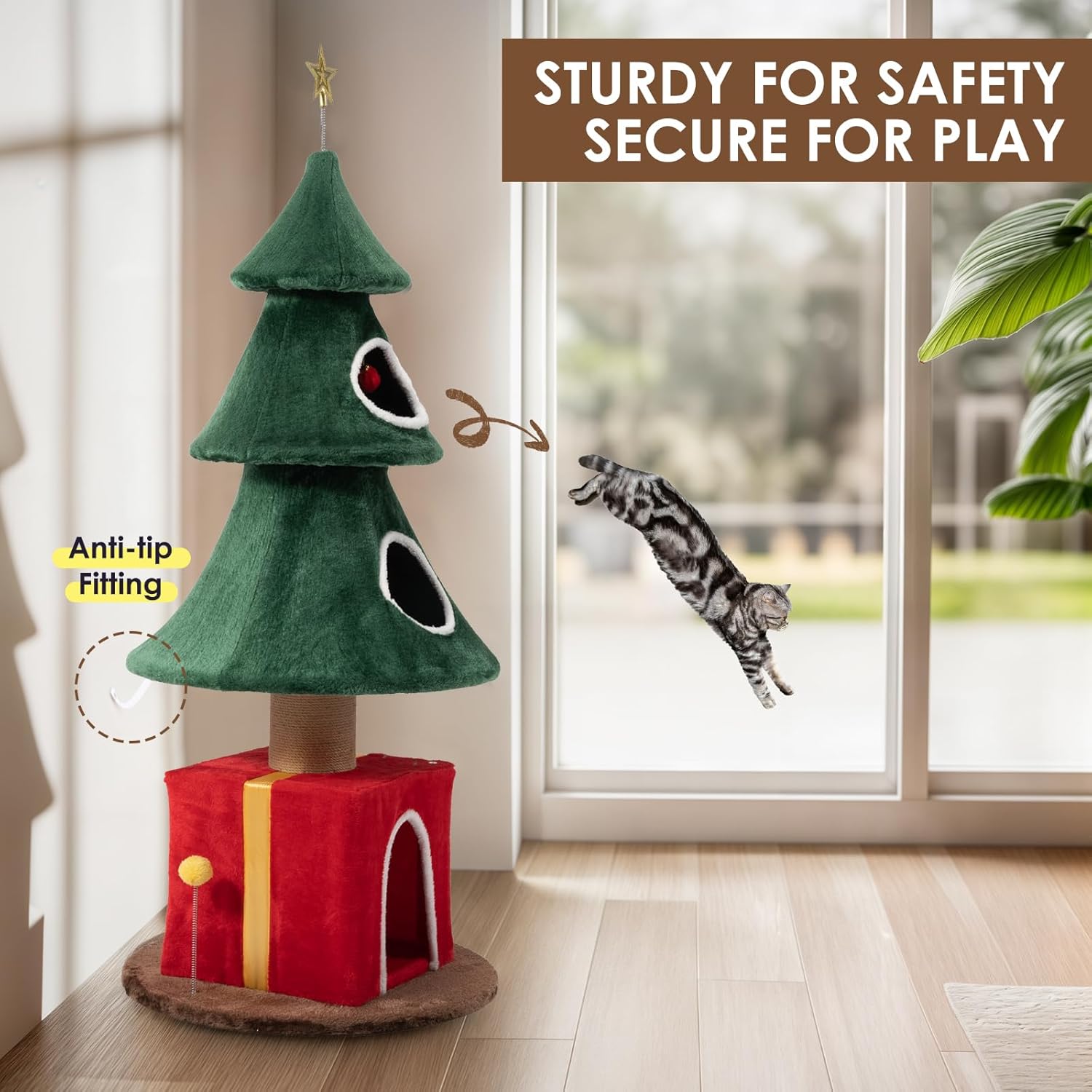 Christmas Gift for Your Furry Family Member: This festive cat tree offers the perfect spot for climbing, playing, and napping—ideal for multi-cat households. Designed like a charming Christmas tree, it also doubles as holiday decor to brighten up your home.