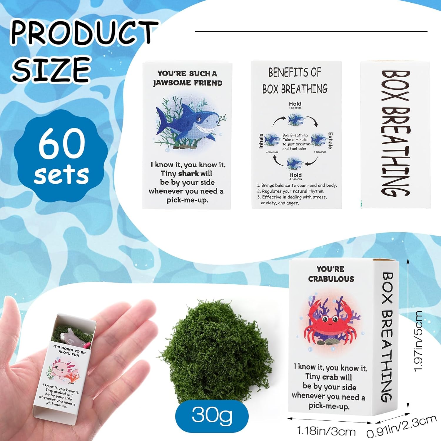 60 Sets Employee Appreciation Gift Box Bulk Mini Resin Sea Ocean Animals Breathing Gift Bulk Emotional Support Positive Box for Staff Coworkers Team Mental Health Care