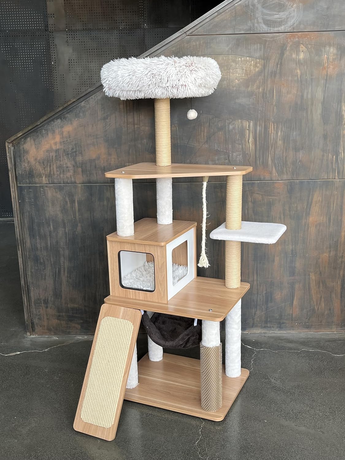 【NATURAL & SUSTAINABLE MATERIALS】Crafted with eco-friendly engineered wood, sisal-wrapped posts, and ultra-soft, non-toxic fabrics for a safe and earth-conscious choice.