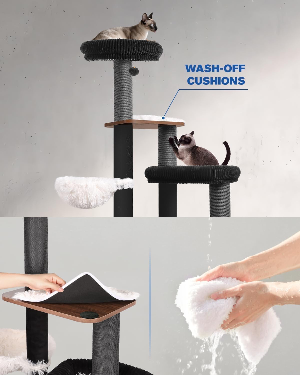 【Spacious Multi-Cat Haven】Designed to accommodate multiple cats in harmony, with spacious platforms and cozy resting zones that offer comfort, privacy, and room to explore.