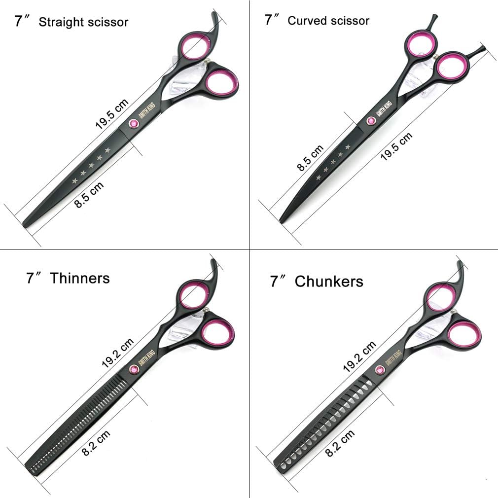 7.0 inches Professional Dog Grooming Scissors Set Straight & thinning & Curved & chunkers 4pcs in 1 Set (with Comb)