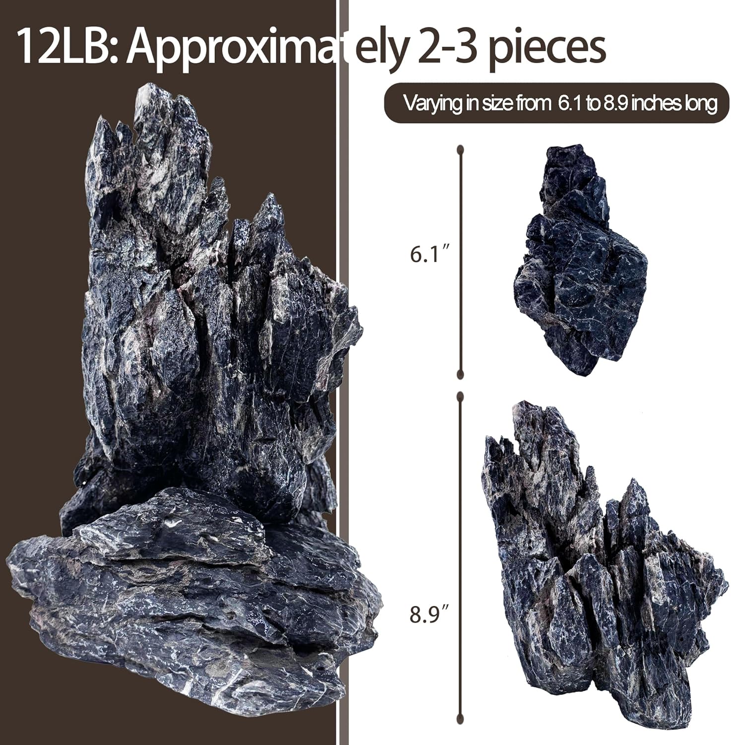 Natural selection:Each aquarium rock is meticulously hand-selected,and Rinse,dry and pack.You to utilize them directly with only minimal rinsing required,the Seiryu Stones stone color will be darker in humid environments.If there is dust on the rock surface after receiving the goods,rinse it with water before use.
