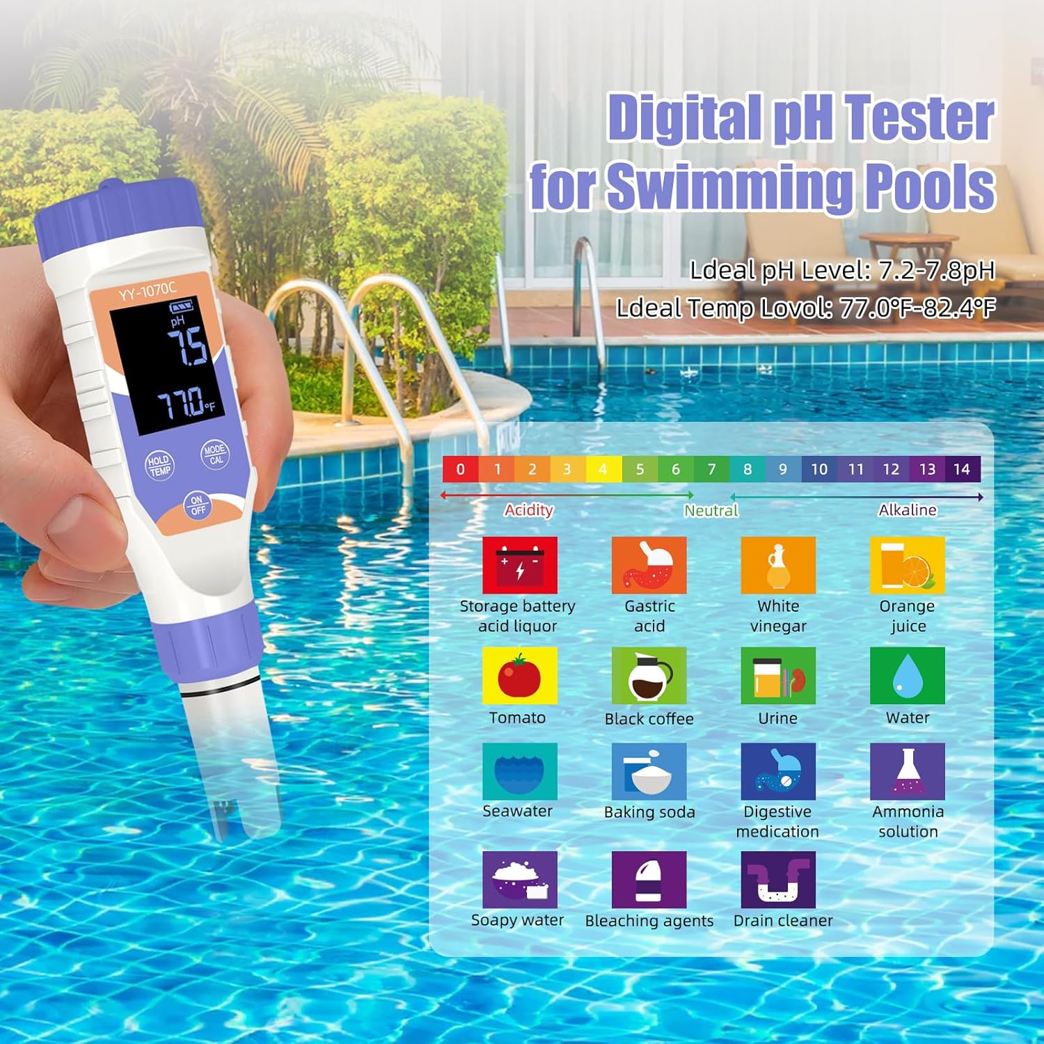 🌊Why Chlorine Testing Matters: Keeping the right free chlorine range (1–3 ppm) ensures your pool water stays balanced and comfortable for swimming. With this digital chlorine tester, you can check levels instantly without relying on test strips or liquid kits.