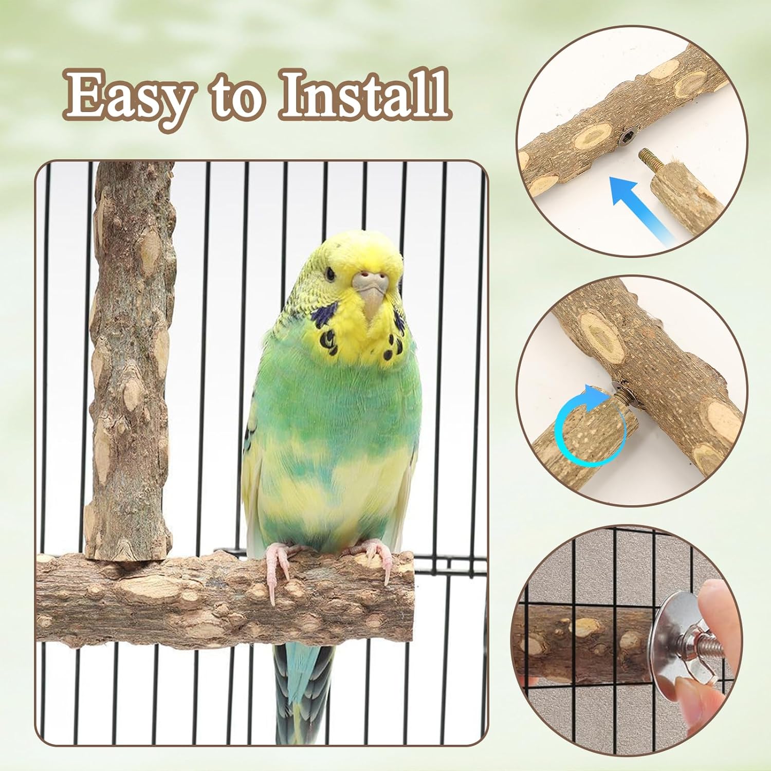 Easy to Install: In order to allow every user to easily enjoy the fun of DIY, we have specially optimized the installation process of parrot perch. Equipped with nuts and built-in bolts, it can be quickly and safely connected. Even on the first attempt, you can quickly get started and create a perfect home for your little bird.