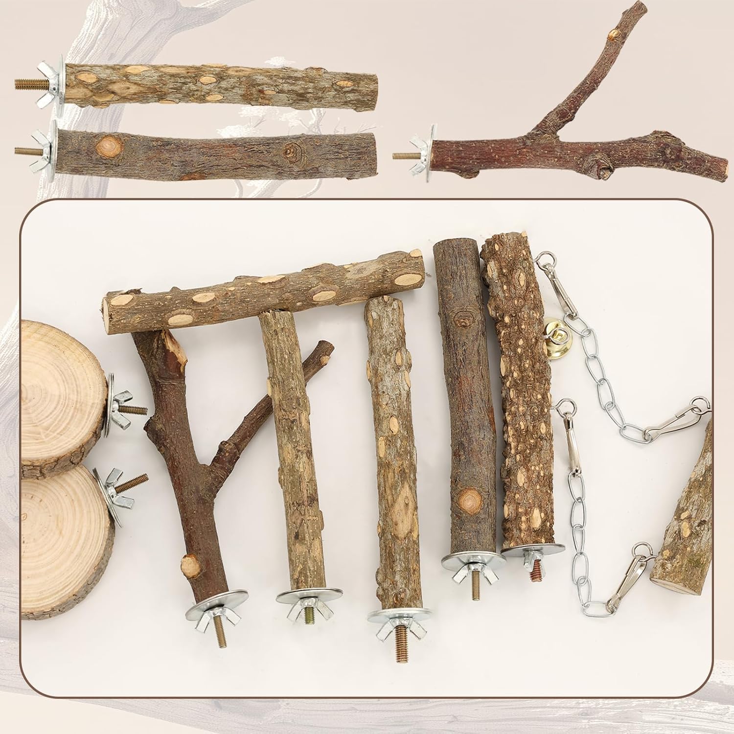 ✔ Each set contains 7 different types of bird accessories, with abundant accessories to meet daily rest and play needs.