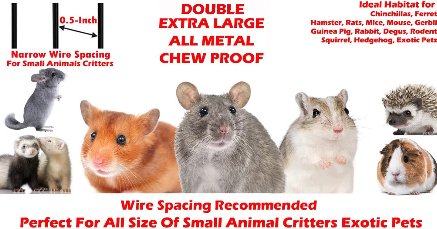 This Small Animal Critters Cage Suitable for variety of small animals critters, ferrets, hedgehogs, guinea pigs, rabbits, bunny, chinchillas, sugar gliders, Syrian hamsters, mouse, mice, rat, dagus, tortoises, lizards and more.