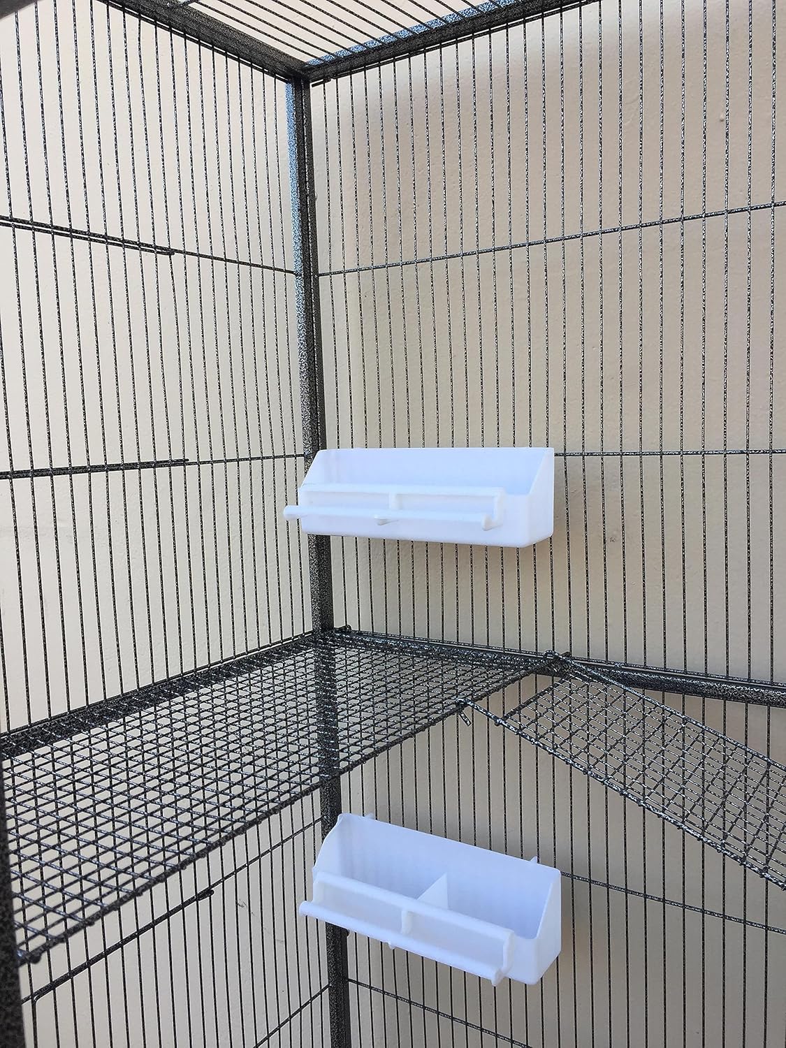 【Accessories】 1/2-Inch Cross Metal Wire Platform and Ladder. Natural Wooden Perch. Double Feeder Cups.