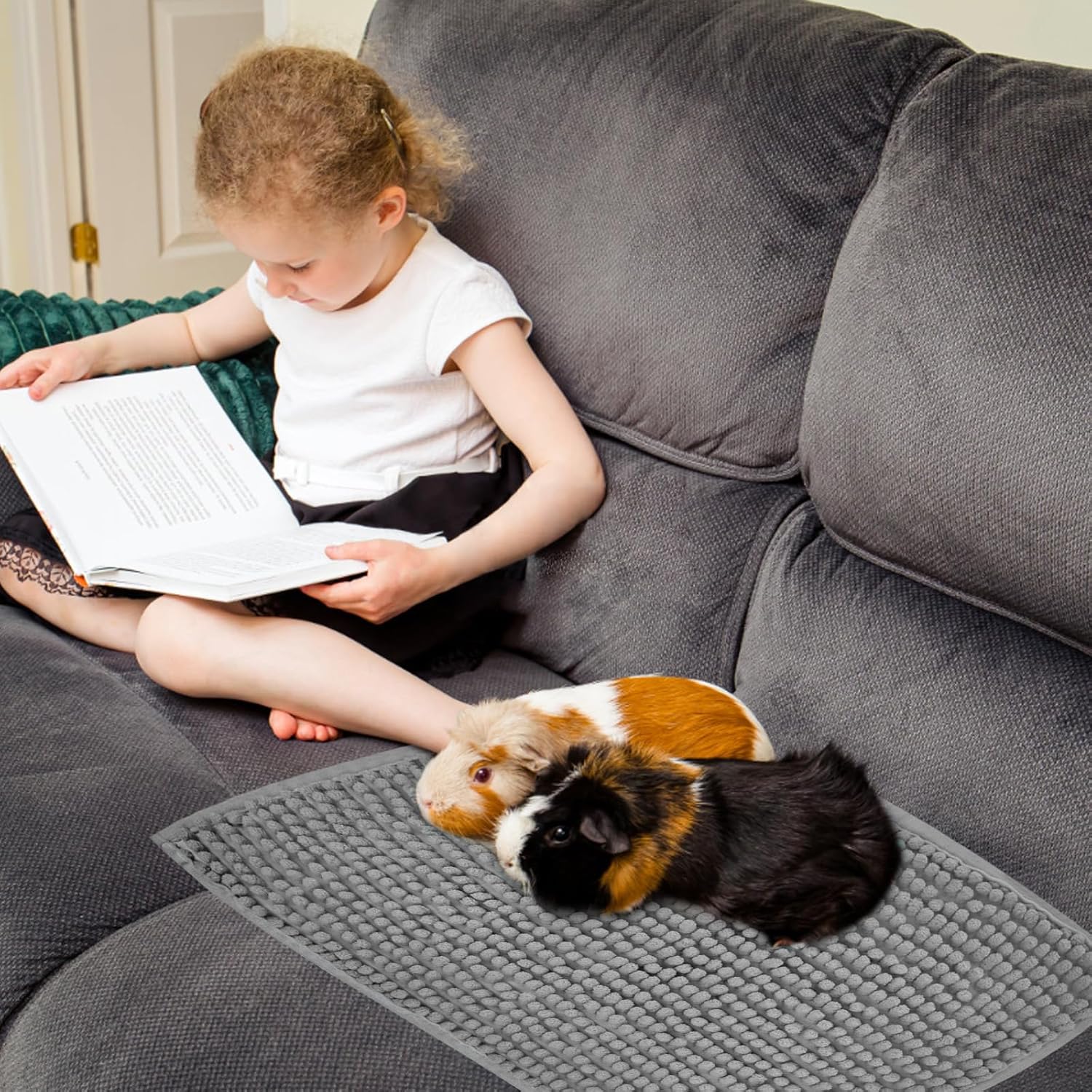 These guinea pig mats are fantastic! I use them on top of my guinea pigs’ bedding as a soft, cozy surface, and my pigs absolutely love lounging on them. The chenille texture is super soft and gentle on their feet, and they add a pop of color to their pen. They also do a surprisingly good job of absorbing small messes and are easy to shake out and wash. Durable, washable, and cuteâthese have become a staple in my setup!