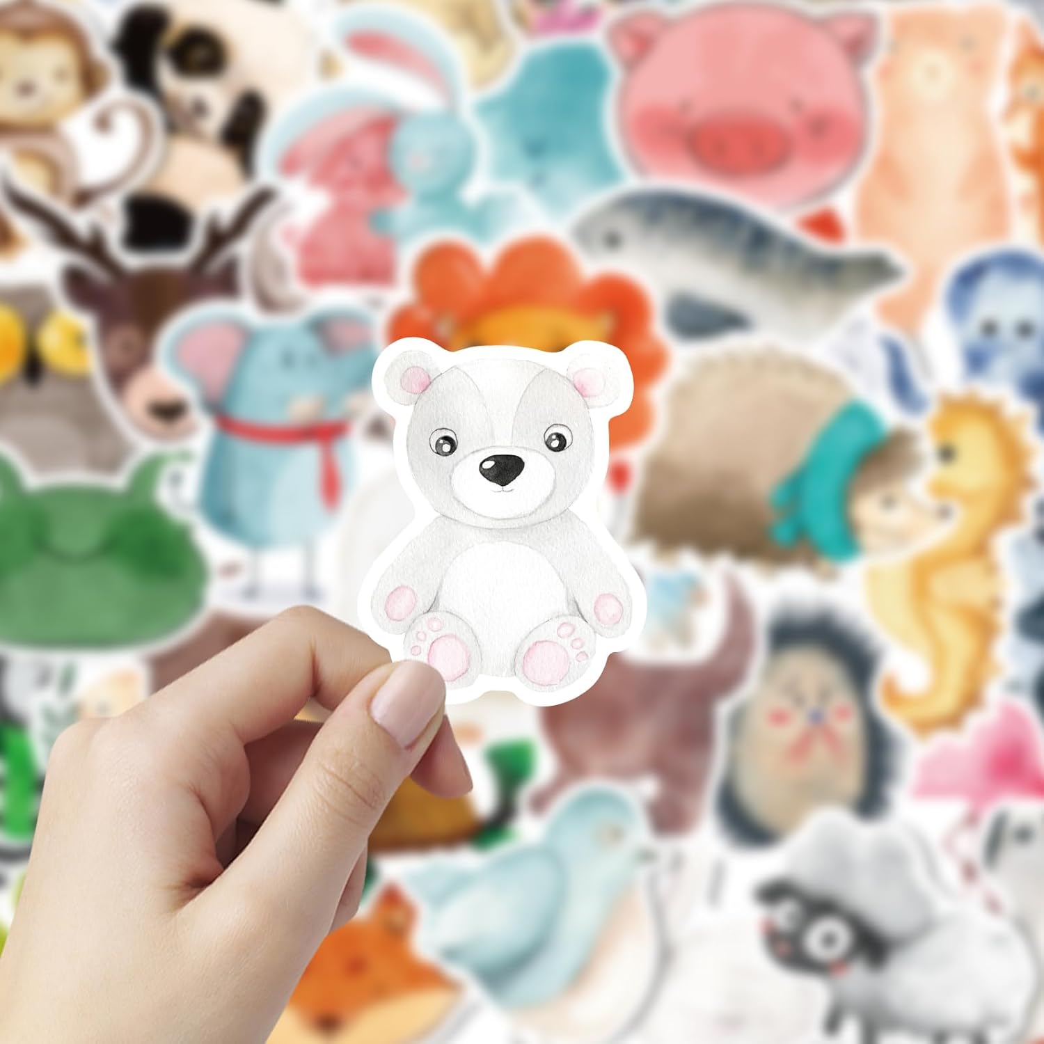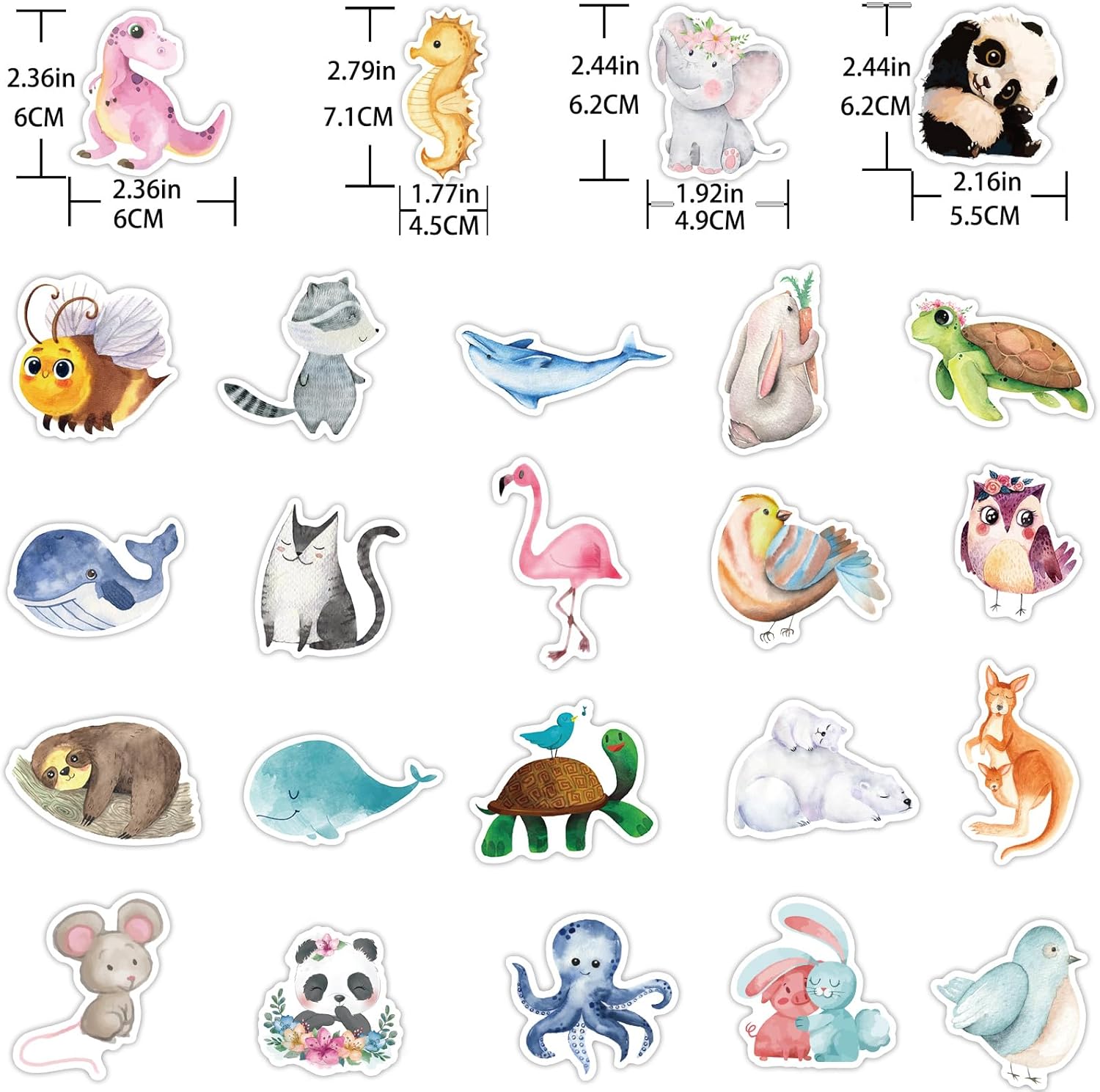 Watercolor Animal Stickers: 80Pcs (No Repetition) adorable cute stickers. Vibrant color and irregular shape for each pattern, super cute and fun designs for kids