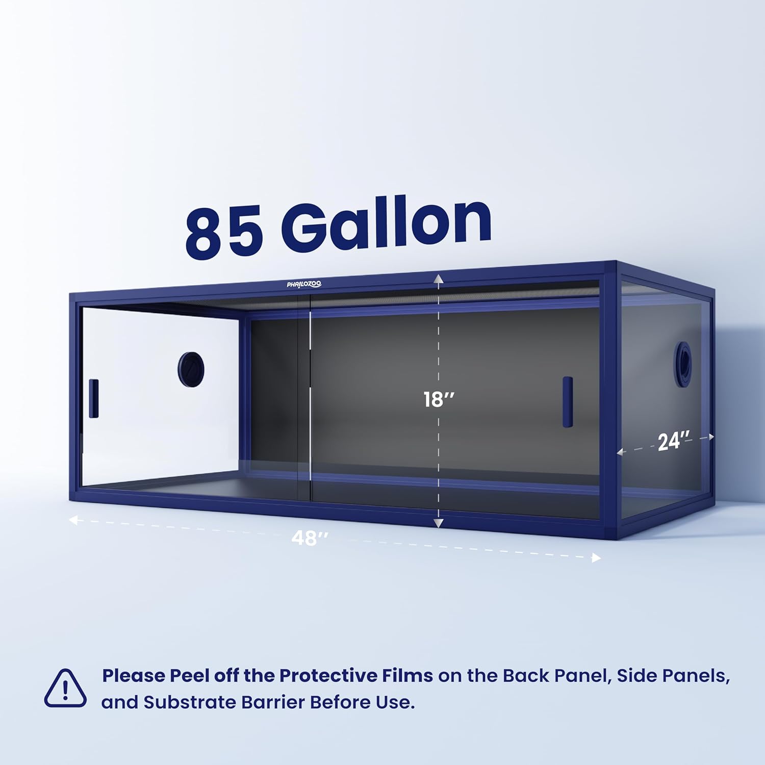 【Size Matters】Our stylish and functional 85 gallon reptile tank measures 48”Lx24”Wx18”H. Perfect for bioactive setups, such as snake enclosure, bearded dragon tank, and lizard tank. Spacious playground for your beloved reptiles to explore and thrive while being safe.