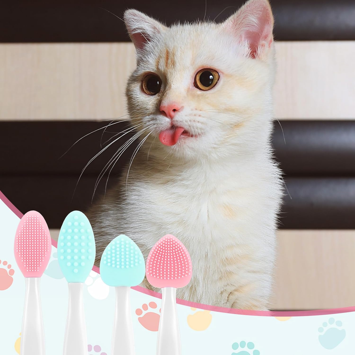 FNANJWQ 8 Pcs Cat Acne Black Seed Brush Soft Pet Grooming Essential Brush for Cats & Dogs Silicone Double-Sided Scraper for Chin Acne and Blackhead Exfoliation (Pink, Green)