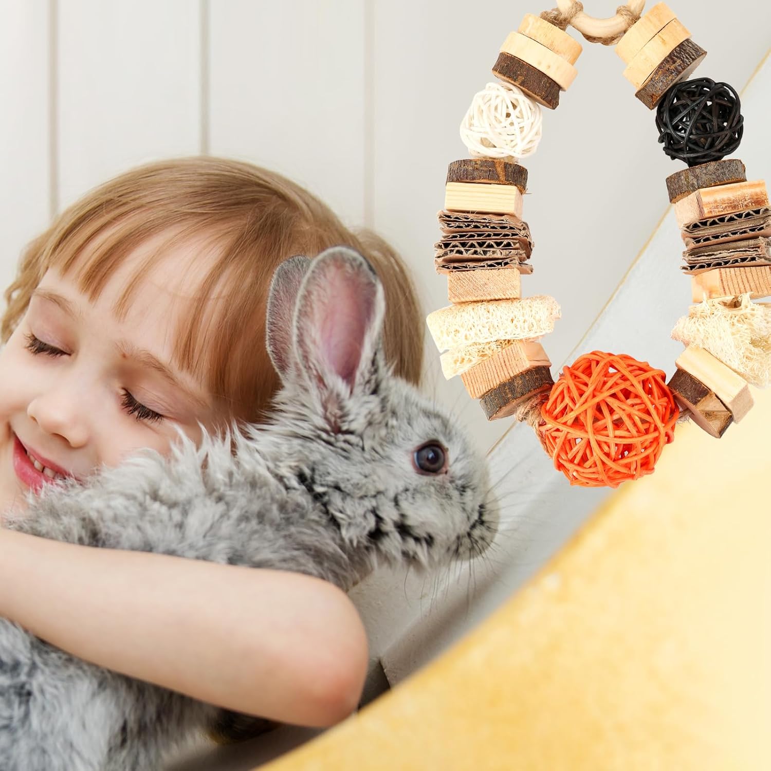 Abizoo Guinea Pig Chew Toys,Bunny Toys Hanging,Natural Wood for Rabbits Teeth Grinding Chinchilla,Bird,Dwarf Hamster,Rabbit Chew Toys Treats Small Animals Enrichment Boredom for Cage