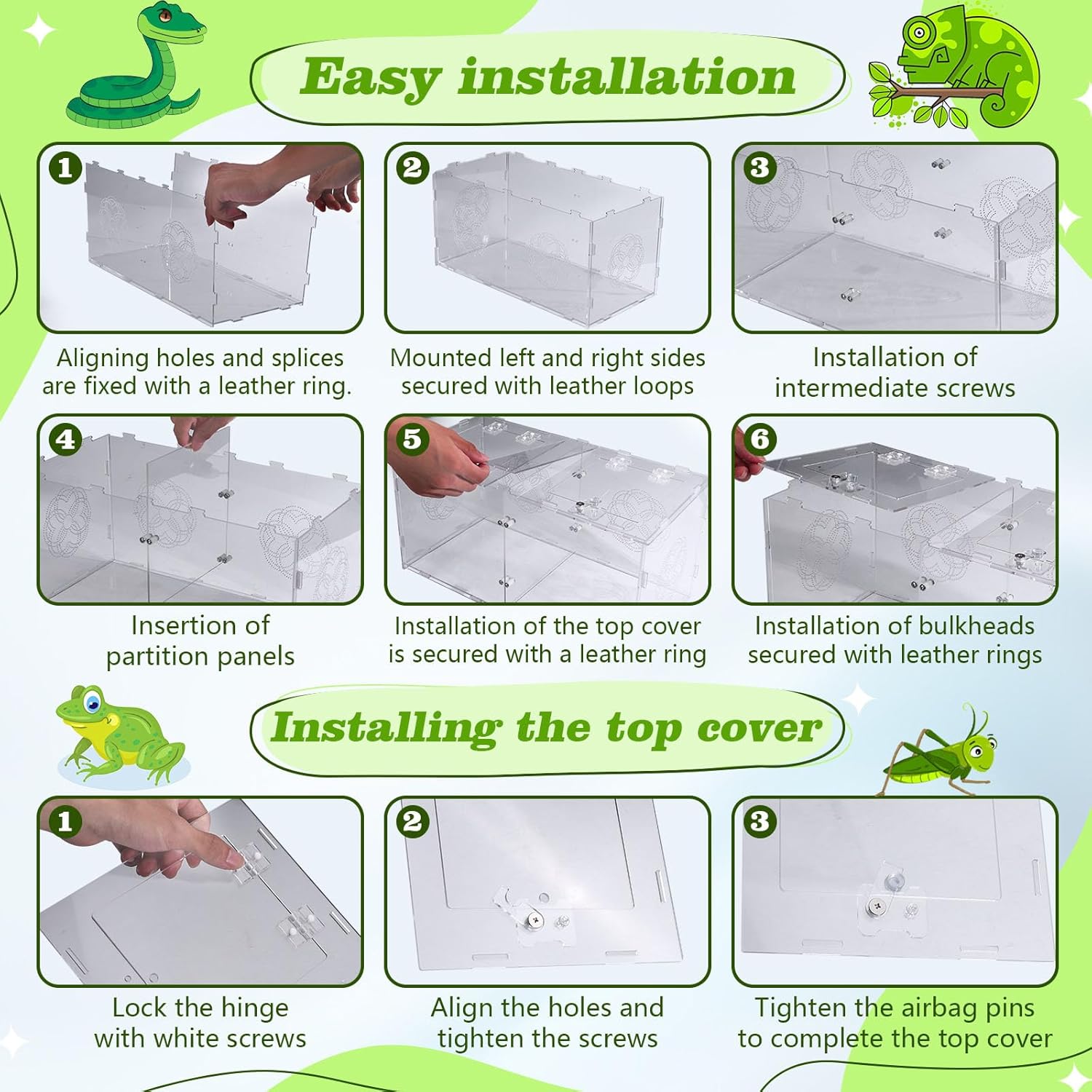 【Premium Materials】This jumping spider enclosure is made of clear acrylic material and measures 15.7×7.8×7.8 inches (40x20x20cm) It is large enough to provide room for a variety of reptiles to move around and install a comfortable and cozy home for your small reptiles