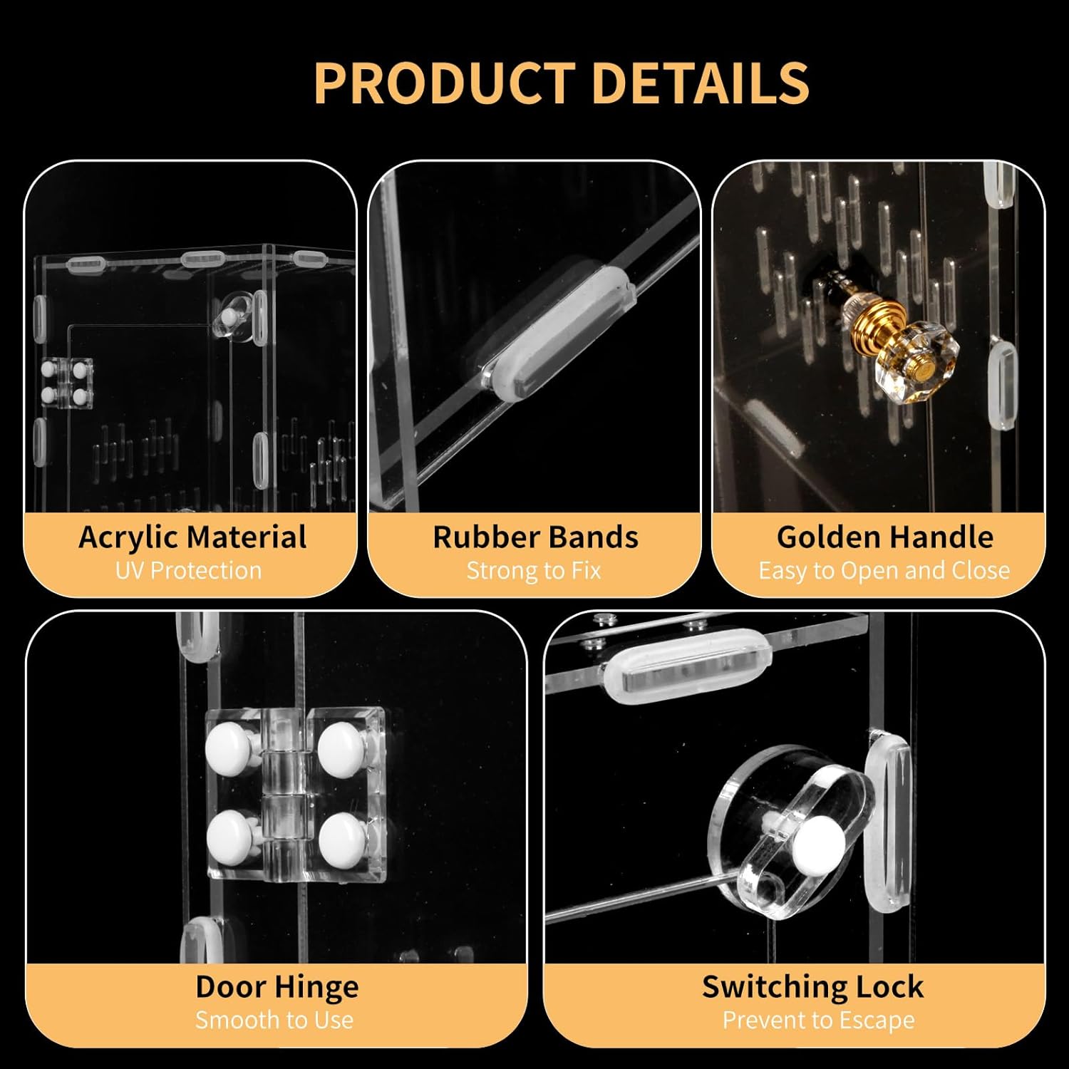 Keep Your Pet Secure: Precision-engineered 0.1inch ventilation gaps and a twist-lock door keep your pet secure, ideal for tiny pets like baby spiders, snails, or tree frogs.