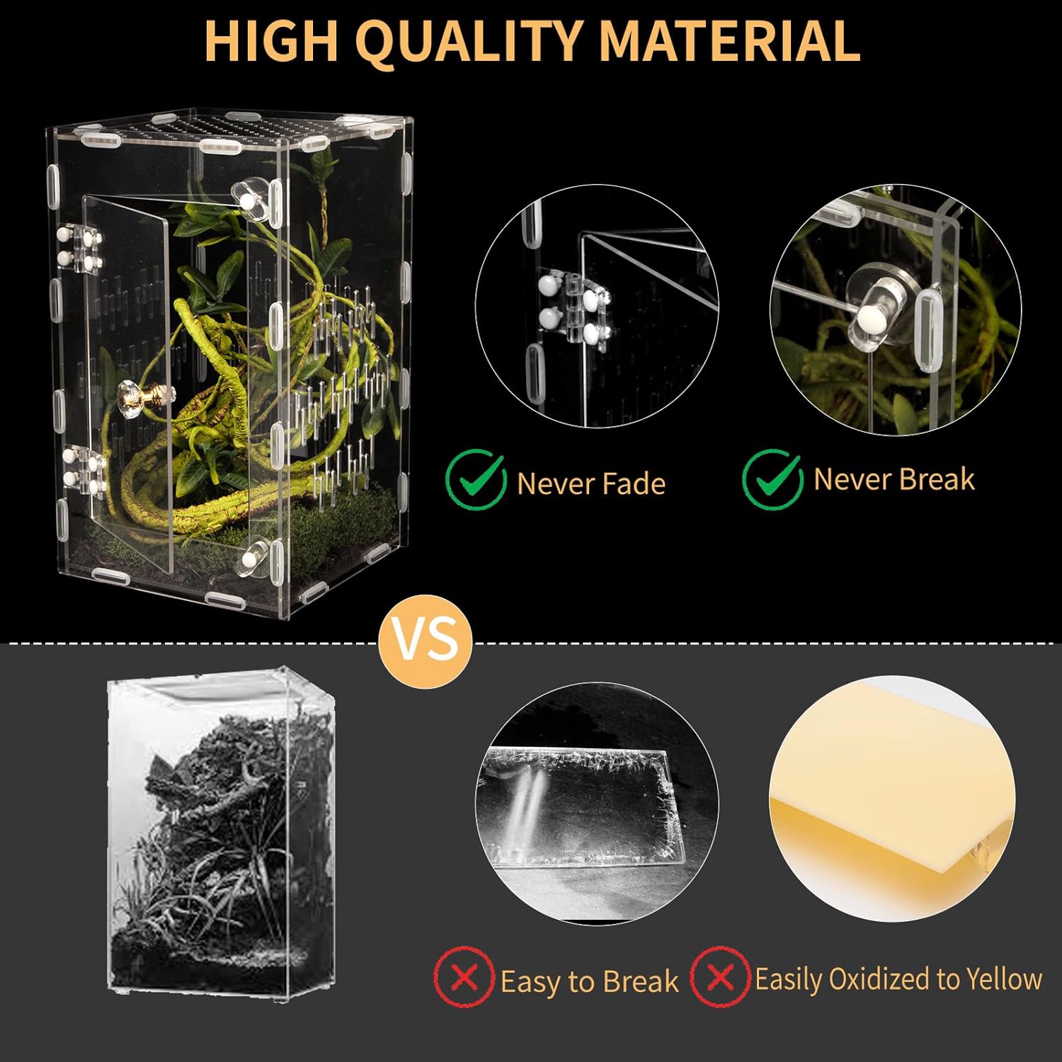 Durable & Scratch-Resistant: Made with non-yellowing, high-grade acrylic, this enclosure resists scratches from claws or decor, ensuring a pristine reptile tank or spider terrarium.